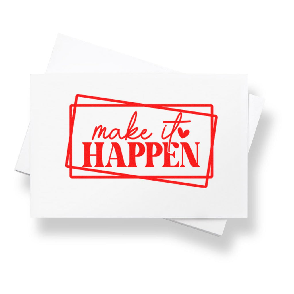 - Boost brand appeal: 1-5/8" framed mantra rubber stamp creates a bold black-and-white “make it HAPPEN.” graphic with overlapping frames and a heart-dot for instant, stylish recognition on cards, tags, and packaging.