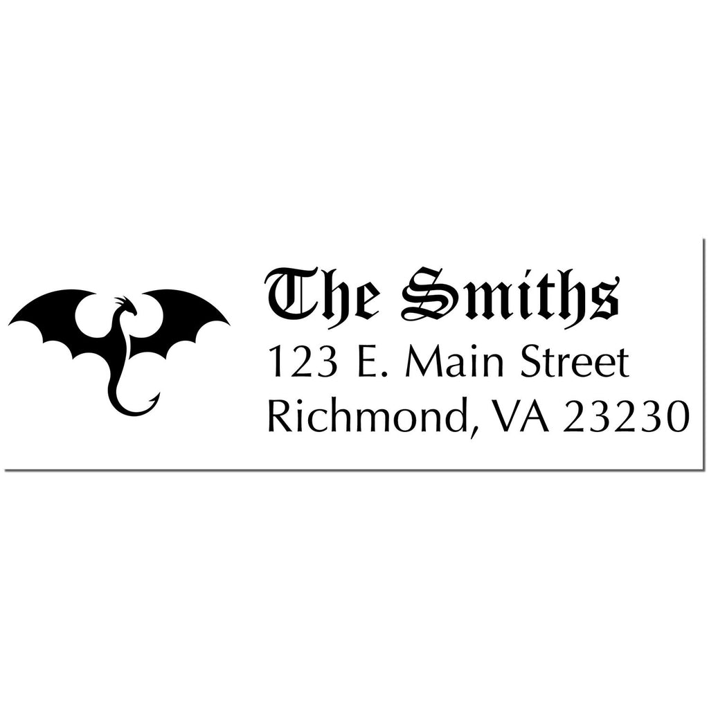 The design of the Frostbite Dragon Stamp is not only captivating but also practical. The dragon's name is prominently displayed, followed by your address in two lines, ensuring clarity and elegance. This balance between a welcoming, personalized style and practical readability makes it an ideal choice for any correspondence.