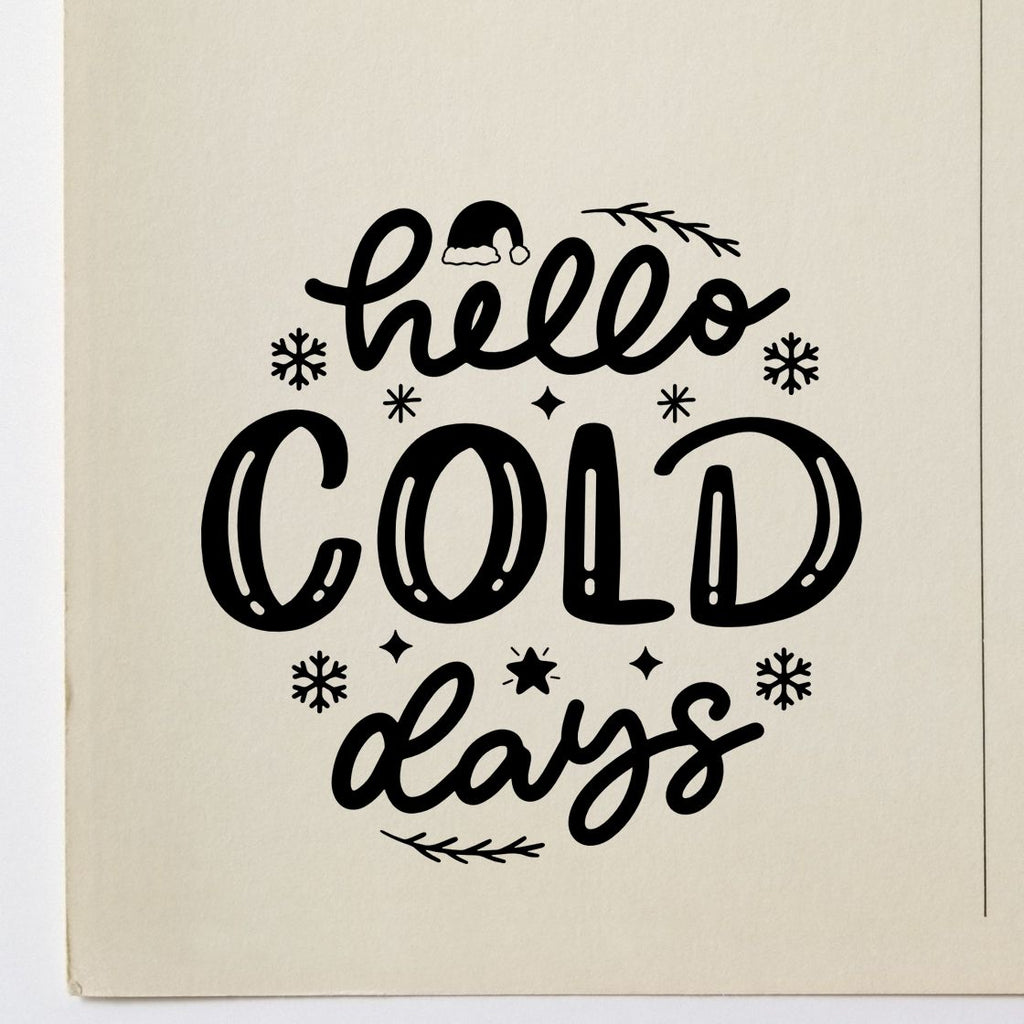 - Style: Playful “hello COLD days” hand-lettered design framed by snowflakes and a tiny Santa hat adds festive charm while keeping your tables elegantly themed.