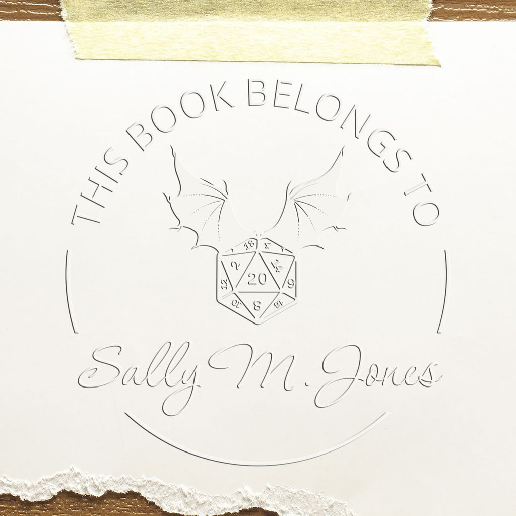 - PROFESSIONAL PERSONALIZATION: Transform your book collection with our premium 1-5/8" embossing seal, featuring a unique D20 design with bat wings. Perfect for gamers and book enthusiasts who want to add a distinctive mark to their library.