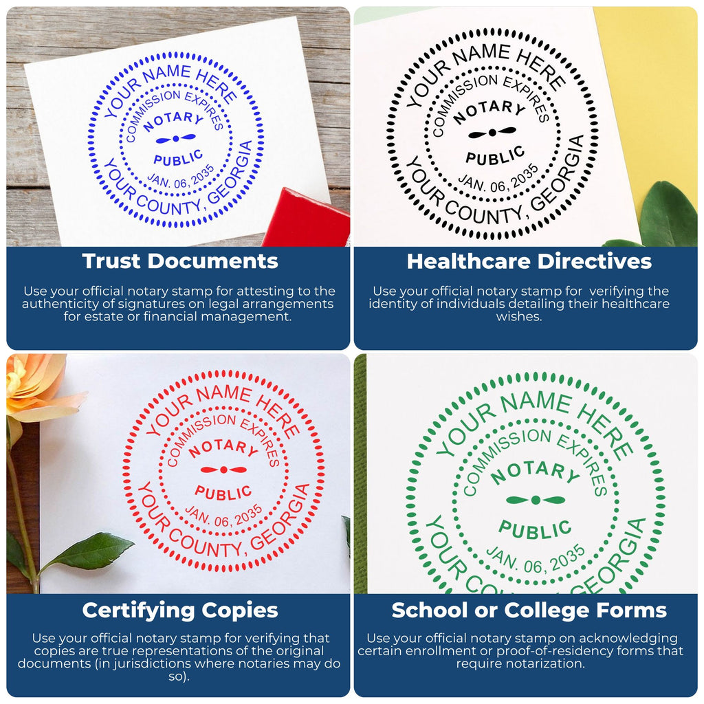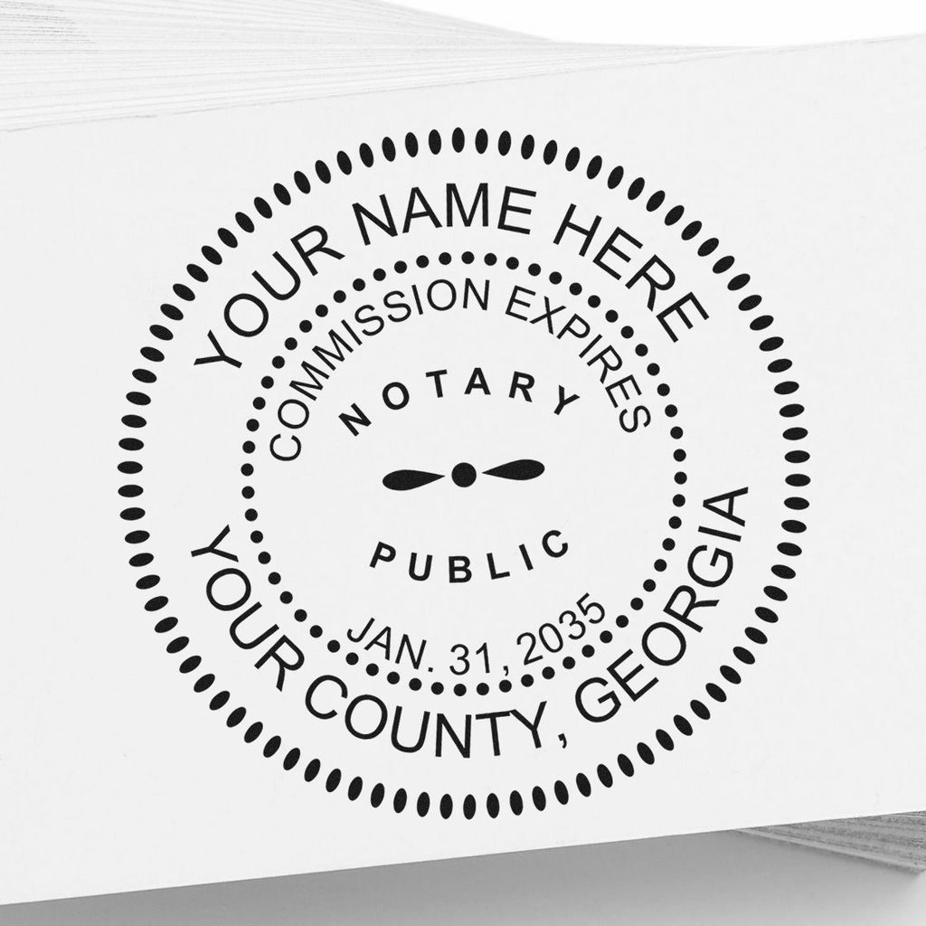 Elevate your notarial duties with our Premium Georgia Notary Seal and Stamp Kit - the ultimate professional duo featuring a distinguished desk seal and round self-inking stamper, meticulously designed for Georgia Notaries.