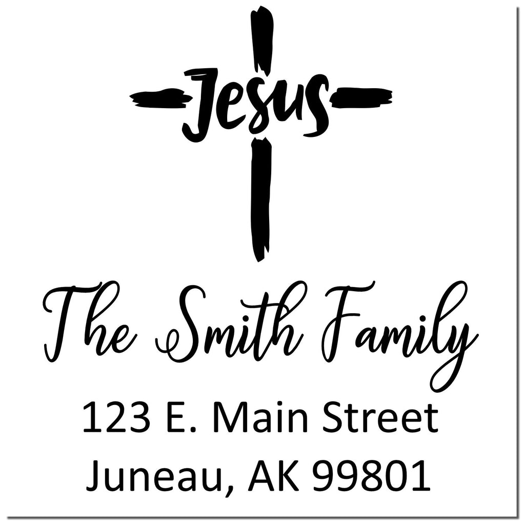 Sleek Design Meets Divine Inspiration Measuring a compact 1-5/8 inches square, this stamp features a beautifully crafted center image of a Godly Cross with the word "Jesus" elegantly inscribed in the middle. Its sleek, ultra-slim profile makes it the ideal companion for the on-the-go professional, dynamic educator, or anyone who wants to add a personal touch to their correspondence. With the Godly Cross stamp, you can express your faith while maintaining a polished and professional appearance in all your mailings.