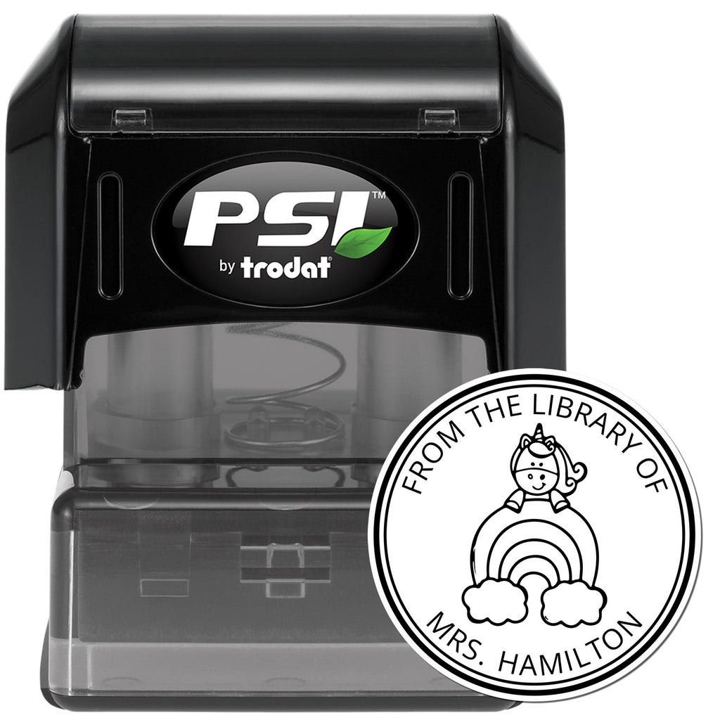 - ENCHANTING UNICORN DESIGN: Featuring a whimsical unicorn with flowing mane perched above a rainbow, this 1-5/8" stamp adds a touch of magic to every book in your collection.