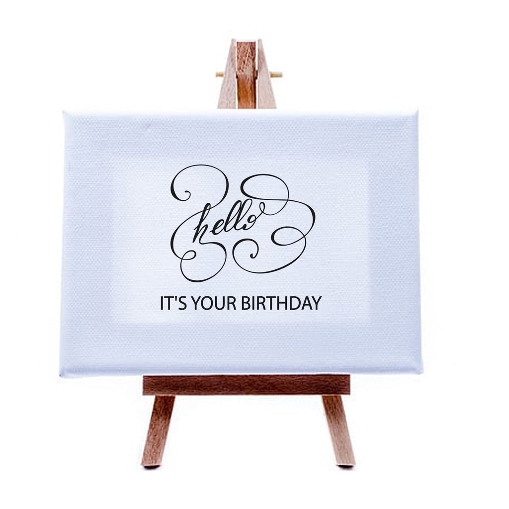 Before: scrambling to make a last-minute card, settling for store-bought. After: a clean white backdrop stamped with an elegant calligraphic “hello” flowing into a bold IT’S YOUR BIRTHDAY—sophisticated, celebratory, and totally personal.