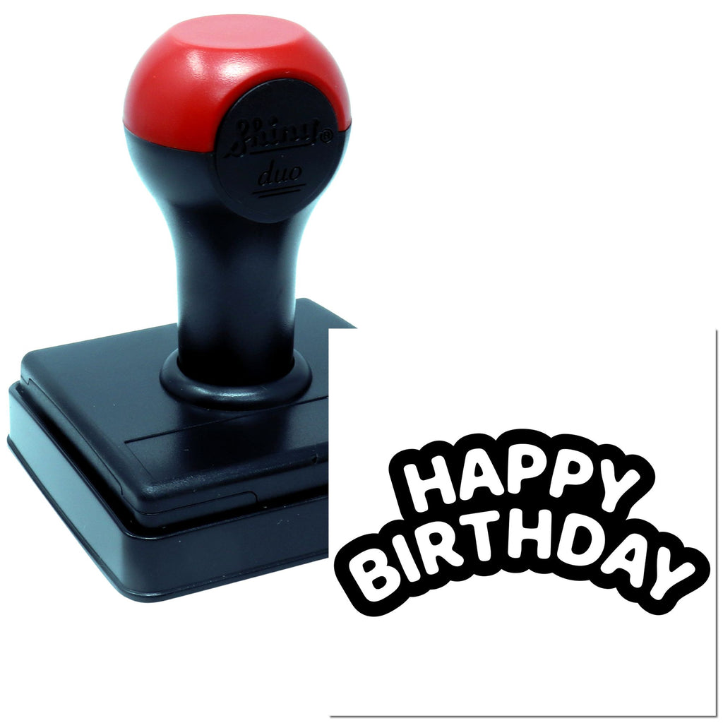 Before: scrambling before guests arrive, mismatched lettering, smudges on every other panel. After: a striking, oversized arch of rounded bubble lettering that shouts HAPPY BIRTHDAY with thick black fill and chunky outline—high-contrast, readable from across the room, perfect for banners, cards, posters, socials, and photo backdrops.