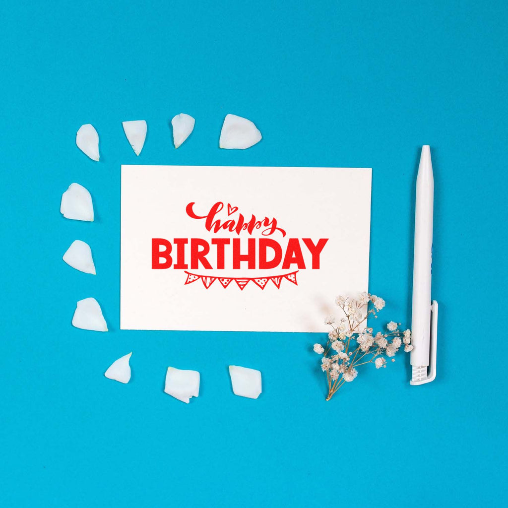 - Design versatility: Striking monochrome artwork of “happy” with a heart over block “BIRTHDAY” and hanging pennants fits cards, apparel, prints, and social posts—use it as a focal piece or a playful border accent across projects.