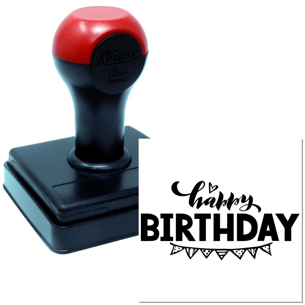 - Achieve sharp results: Professional-grade engraved die produces crisp, consistent impressions on every press—perfect for the 1-5/8" square “happy BIRTHDAY” cursive-and-pennant design that looks polished on cards, posters, and labels. Ink pad sold separately; use dye or pigment inks for best detail.