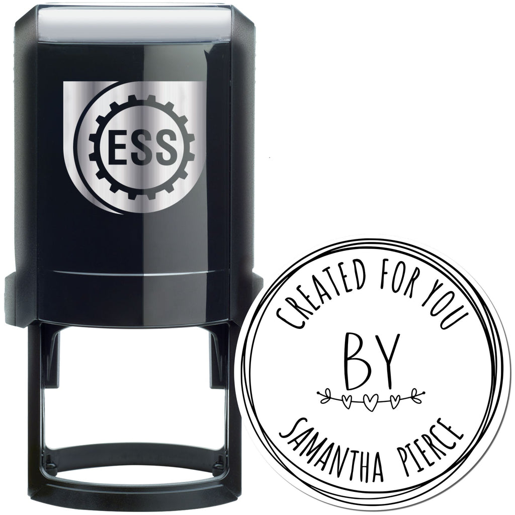 Unleash your creativity with the Handcrafted Love Personalizable Handmade Stamp, a must-have for any artisan or small business owner looking to add a personal touch to their creations. This 1-5/8" round stamp is not just a tool; it's a statement of style and individuality. With "created for you" elegantly encircling the top and "Samantha Pierce" playfully adorning the bottom, this stamp transforms ordinary items into extraordinary keepsakes.