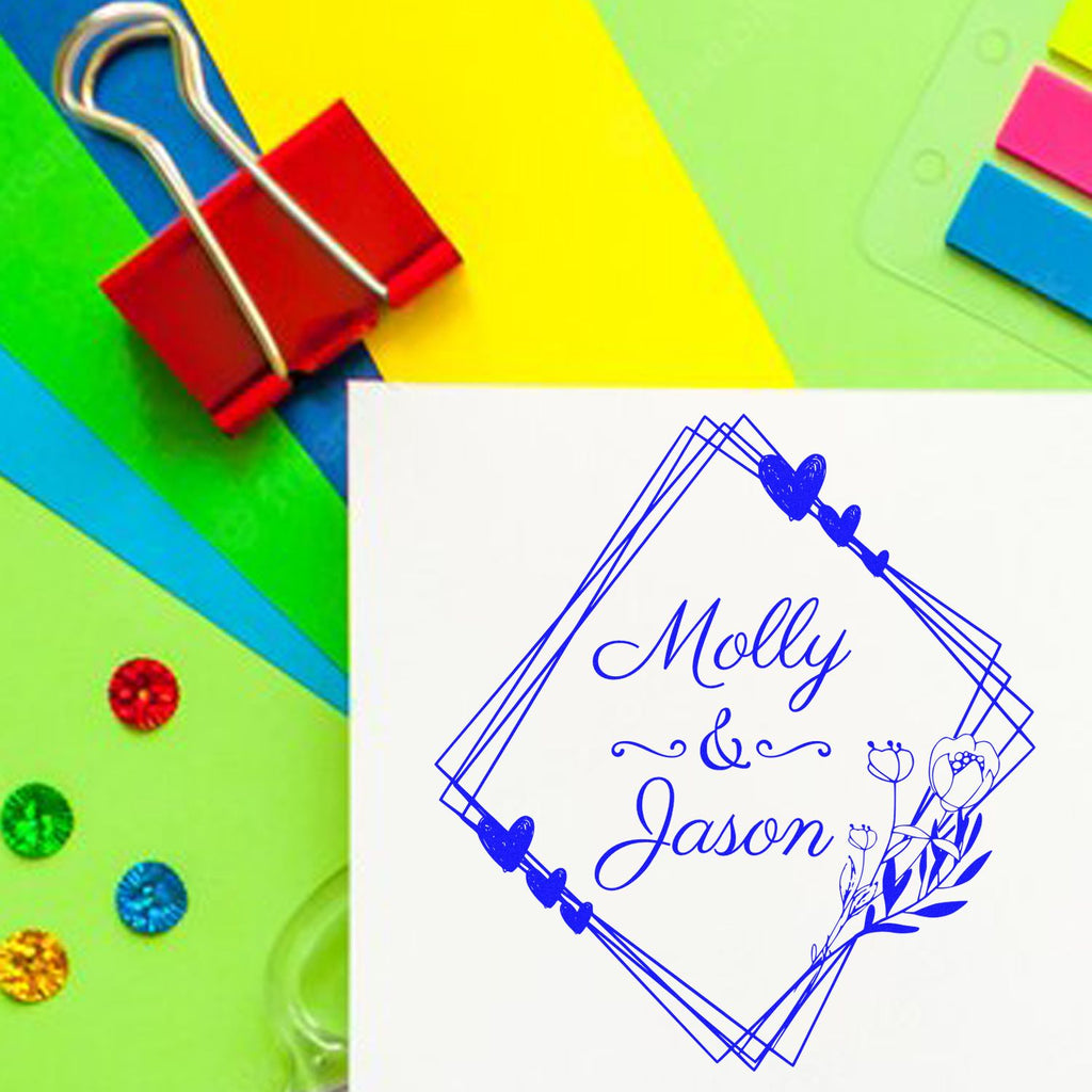 - PERSONALIZED ELEGANCE: Create timeless wedding memories with our custom monogram stamper, featuring an exquisite diamond frame adorned with delicate hearts and floral accents. Perfect for invitations, thank-you cards, and wedding stationery.