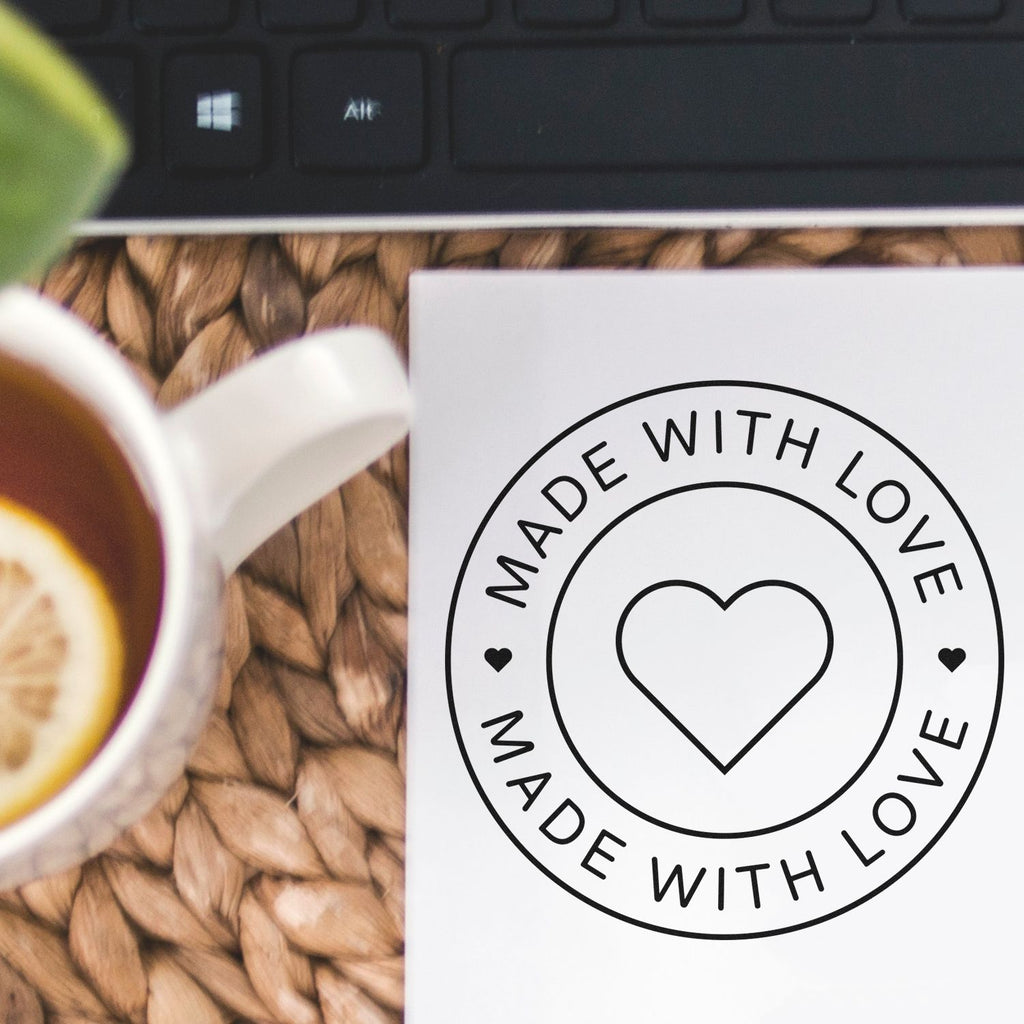 - MINIMALIST ELEGANCE: Featuring a circular design with "made with love" and charming hearts, our stamp is a minimalist masterpiece. Its sleek black lines and bold heart icon make a statement of elegance and simplicity.