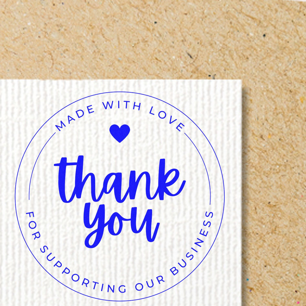 - VERSATILE CUSTOMIZATION OPTIONS: Choose from 11 vibrant ink colors to match your brand identity. 1-5/8" round design features elegant "thank you" text with heartfelt messaging. Personalize your customer communications effortlessly.
