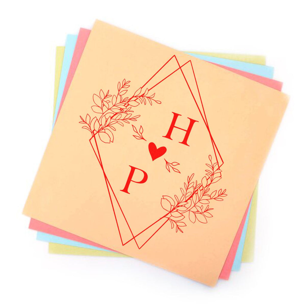 - ELEGANT BOTANICAL DESIGN: Showcase your style with delicate leaf accents and a charming heart symbol surrounding your personalized initials. Ideal for couples seeking a sophisticated touch for their correspondence.
