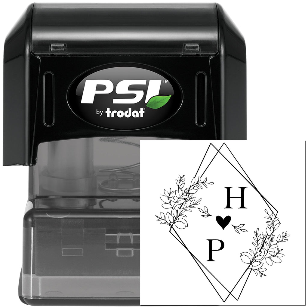 Transform your scrapbooking journey with the Heartfelt Harmony Customized Initial Stamper - where elegance meets personal expression in every impression. This exquisite 1-5/8" square stamper features a sophisticated design of overlapping diamonds, adorned with delicate botanical elements and your chosen initials in timeless serif font.