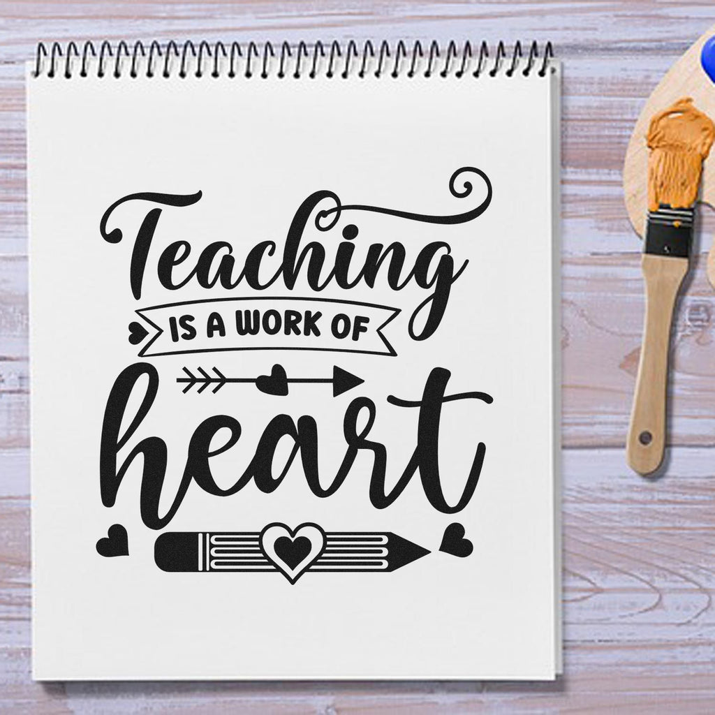 - Polish: Laser-engraved 1-5/8" square design stamps crisp, detailed impressions of “Teaching is a work of heart” with hearts, arrow and pencil accents for an instantly curated, heartfelt look.
