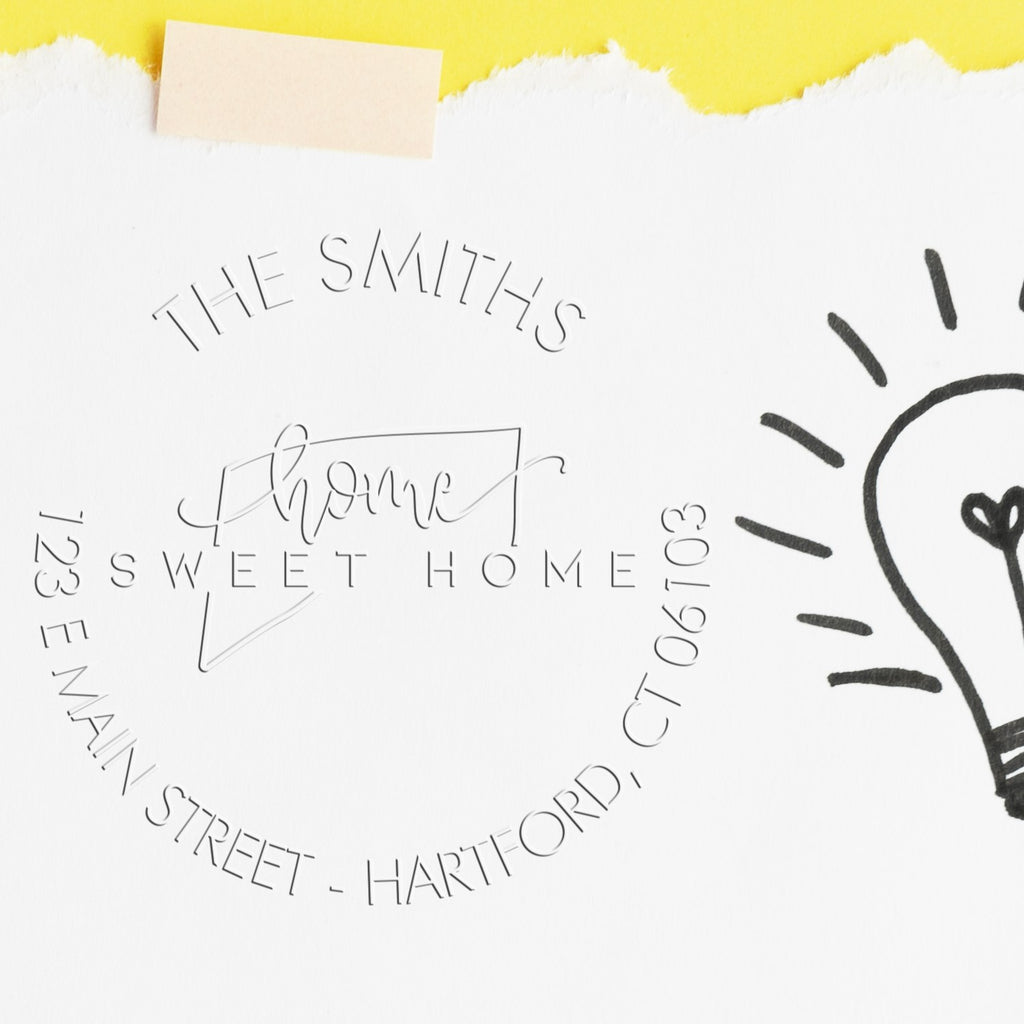 Elevate your Connecticut home's correspondence with our exquisite Home Sweet Home Address Embosser Seal - where elegance meets functionality in a perfectly personalized package. This premium 1-5/8" round embosser transforms ordinary mail into sophisticated statements of style.