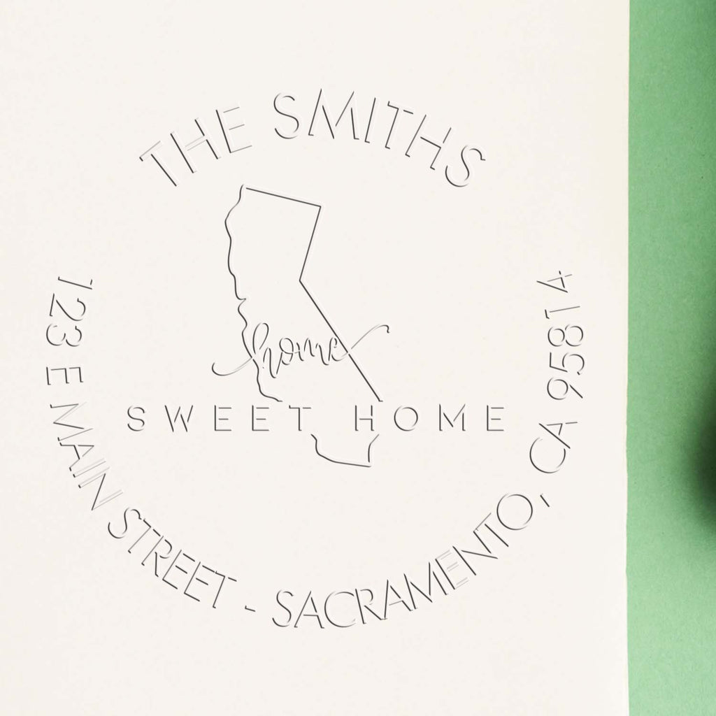 - ELEGANT CALIFORNIA DESIGN - Showcase your state pride with our custom "Home Sweet Home" embosser featuring the iconic California outline and stylish typography that makes your mail stand out.