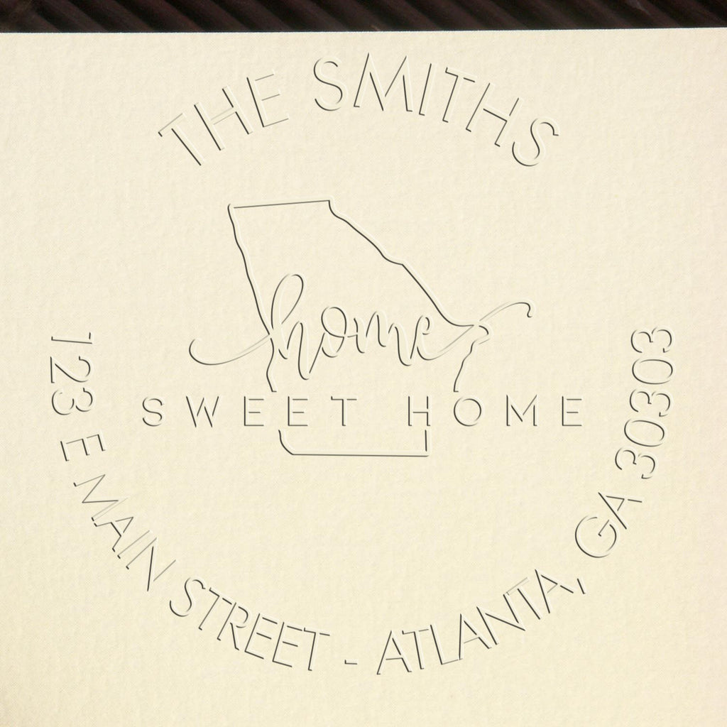 - PROFESSIONAL PERSONALIZATION: Transform your Georgia correspondence with our premium desk embosser, featuring a custom state design and elegant "Home Sweet Home" text that adds sophistication to every envelope and document.
