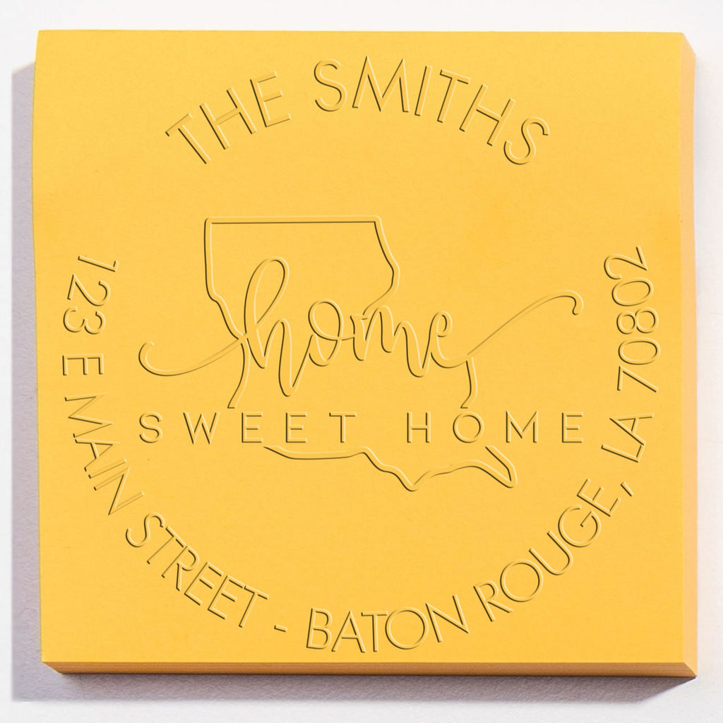 - PROFESSIONAL ELEGANCE: Transform your Louisiana correspondence with our handcrafted 1-5/8" round desk embosser, featuring a custom "Home Sweet Home" design that adds sophistication to every impression. Perfect for addressing envelopes and crafting projects.