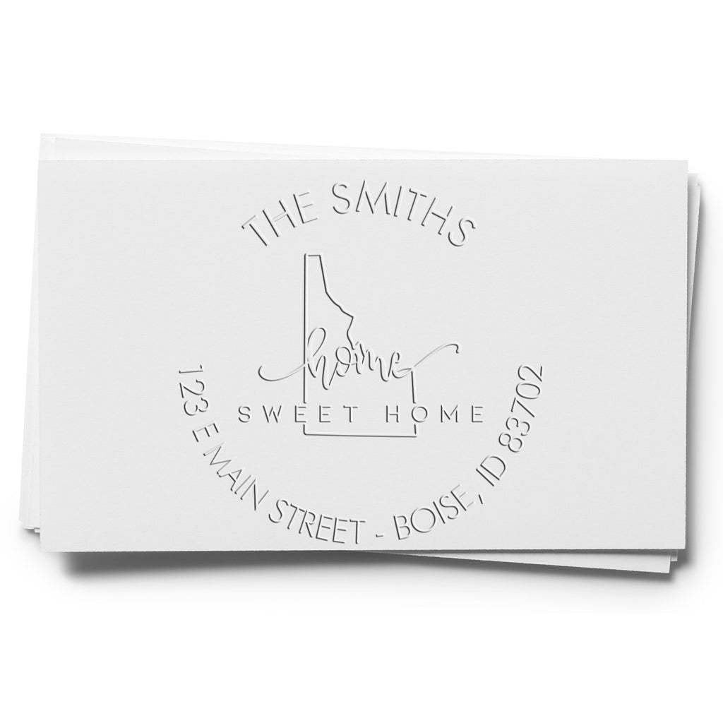 - EXPERIENCE DURABILITY AND STYLE with our handcrafted design featuring the shape of Idaho and the charming "Home Sweet Home" inscription. Built to last, this embosser combines functionality with aesthetic appeal, making it a stylish addition to your workspace.