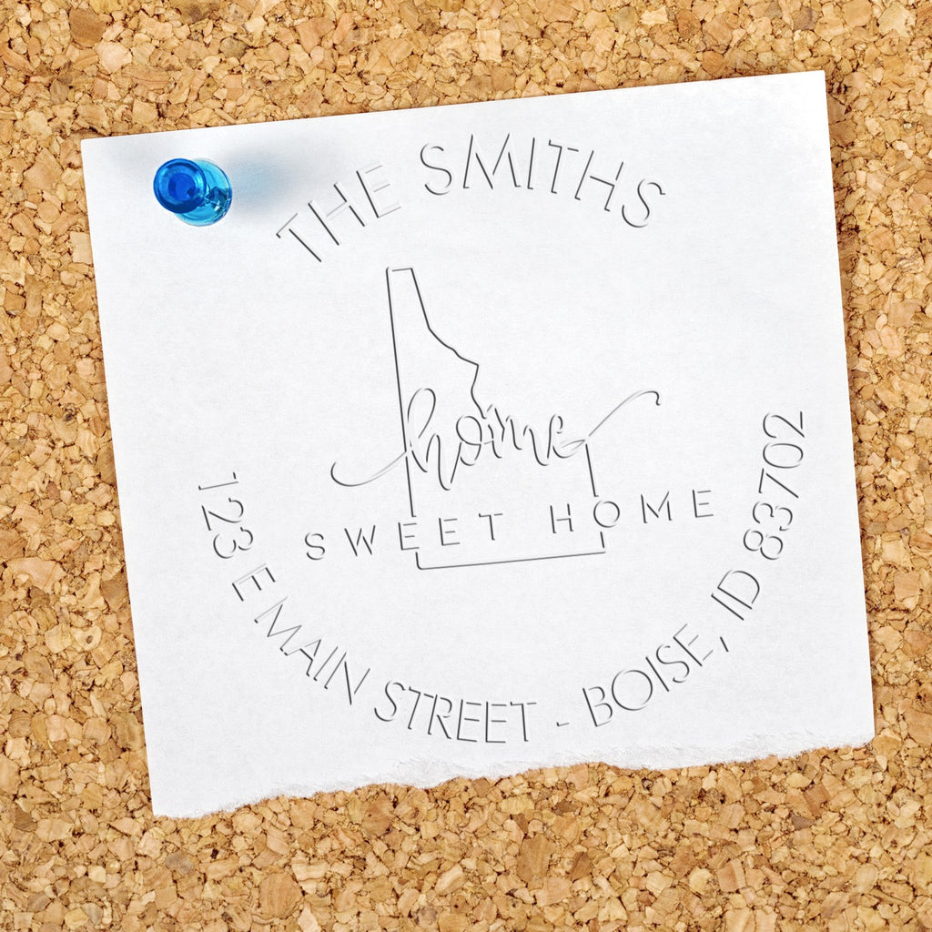 - ELEVATE YOUR MAILING GAME with our Home Sweet Home Idaho Hybrid Personalizable New Address Embossing Seal. This stylish embosser adds a decorative touch to your envelopes, making every mailing a delightful experience. Impress your friends and family with a unique, artistic flair that stands out!