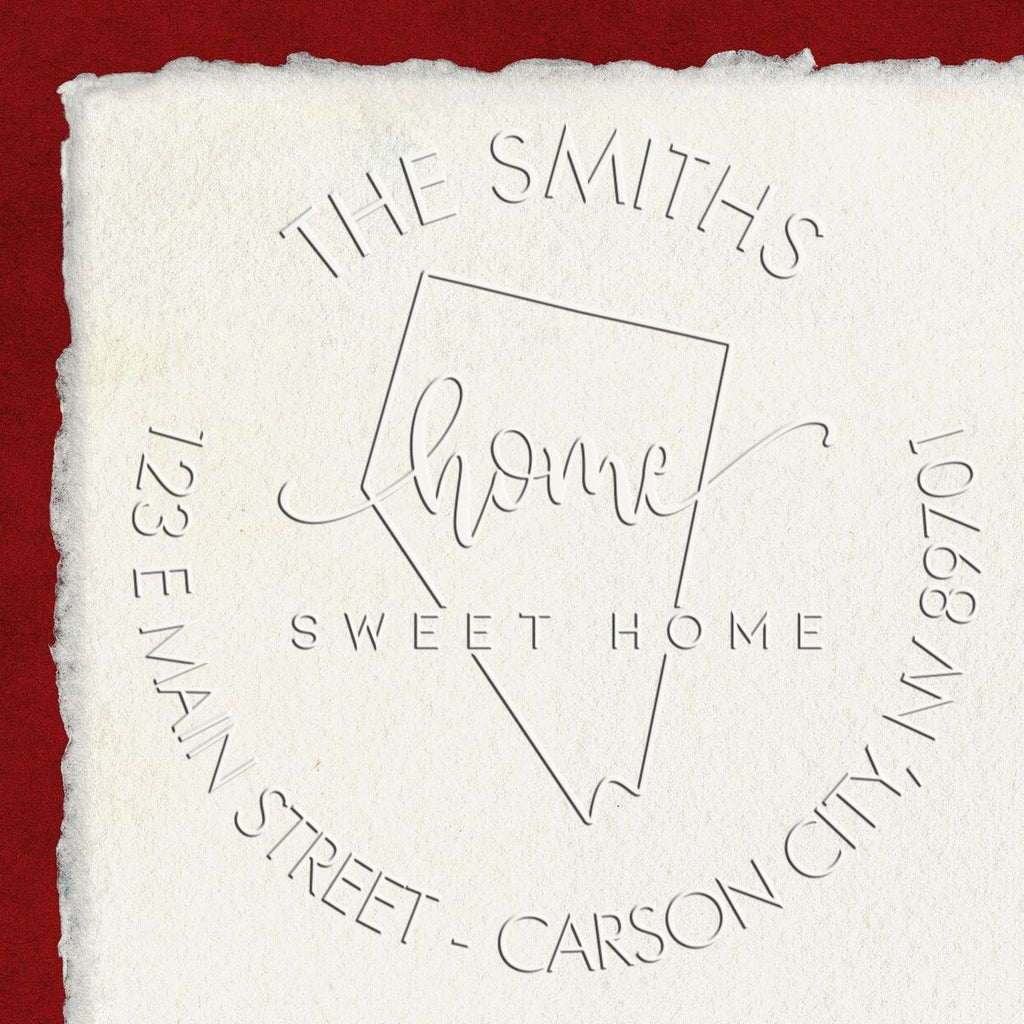 - MADE-TO-ORDER EXCELLENCE: Each embosser is custom crafted to your specifications, ensuring a unique and personal touch. Featuring your name and address in an elegant Nevada-themed design.