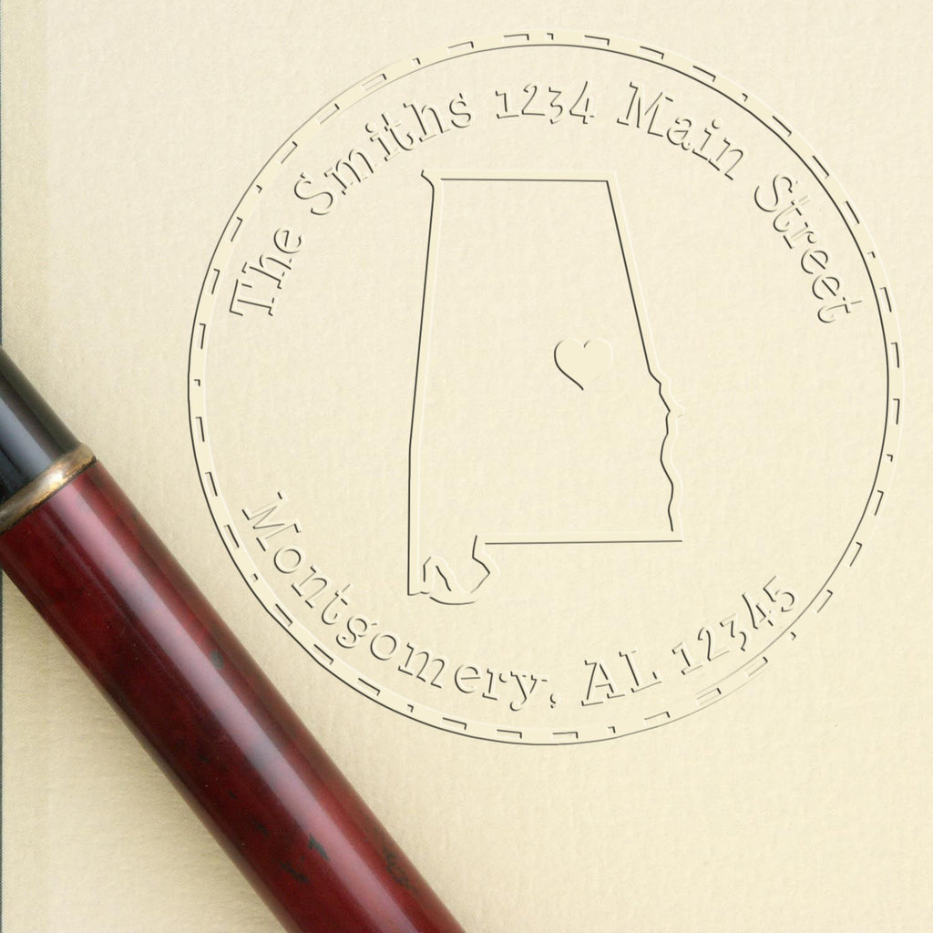 - CUSTOMIZABLE NEW ADDRESS EMBOSSED STAMP allows you to personalize your home decor effortlessly. Showcase your love for Alabama with a stunning design that features the state outline and a heart over the capital. Make your mark with a unique touch that reflects your pride!