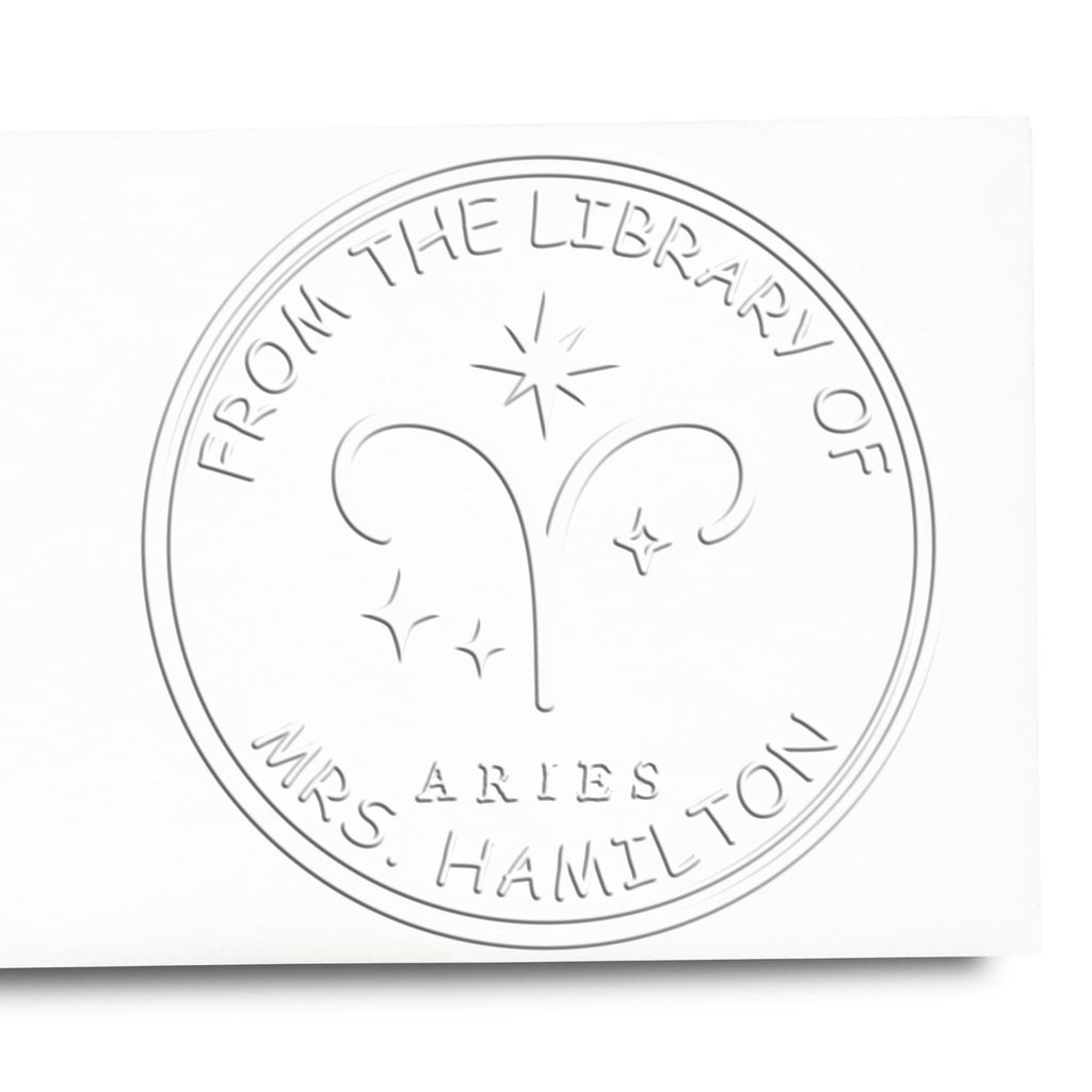 - CUSTOMIZATION OPTIONS: Personalize your embosser with your name or a special phrase, making it uniquely yours. The celestial design features the Aries zodiac symbol surrounded by stars, perfect for astrology lovers. Create a one-of-a-kind statement in your library!