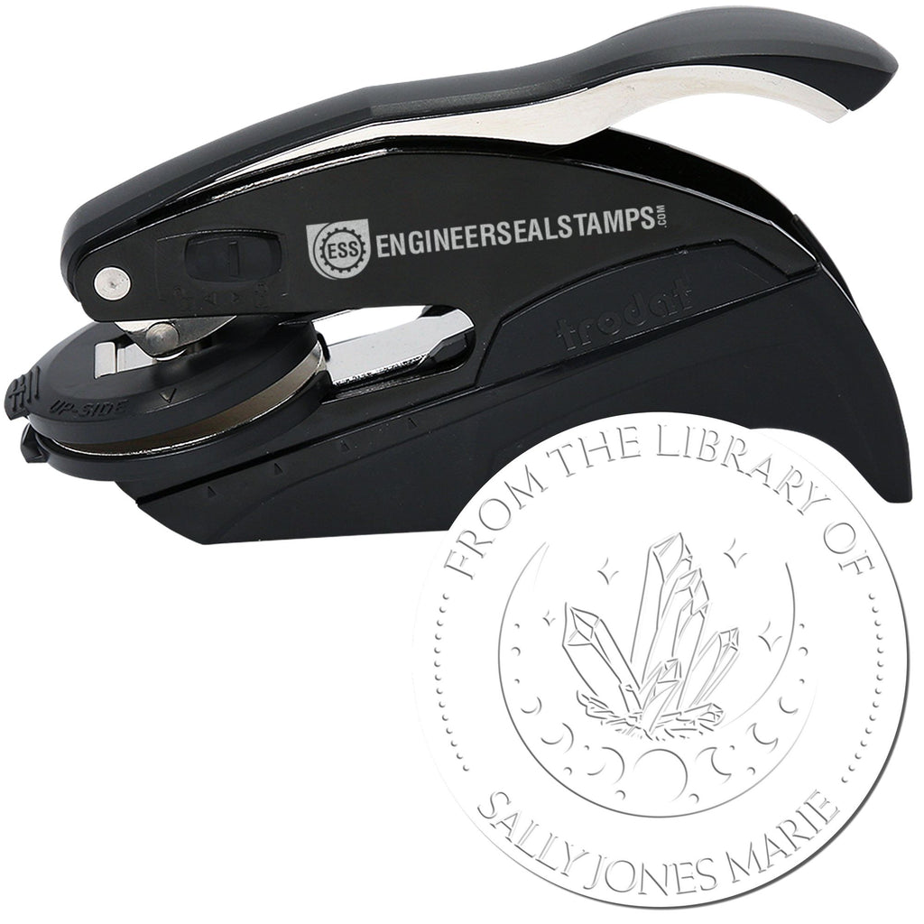 - PERSONALIZED ELEGANCE: Transform your library with our 1-5/8" diameter hybrid embosser featuring an enchanting moon and crystal design. Create permanent, professional-quality impressions that won't fade or smudge like traditional ink stamps.