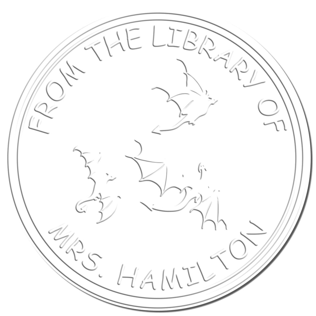A Design That Speaks Volumes The design of our book embosser features a stunning Astral Ash Dragon at the center, surrounded by a double solid concentric circular border. The phrases "This Book Belongs To", "From The Library of", and "Ex Libris" can be elegantly displayed at the top arc, followed by your name or a personal saying at the bottom arc. This unique design not only marks your ownership but also treats each book in your collection with the care it deserves.