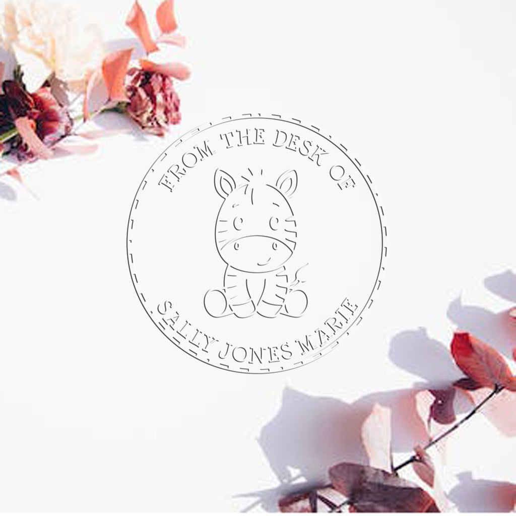 - PROFESSIONAL QUALITY DESIGN: Features a charming Baby Zebra motif with decorative border, measuring 1-5/8" in diameter. Creates crisp, clear impressions every time with minimal effort.