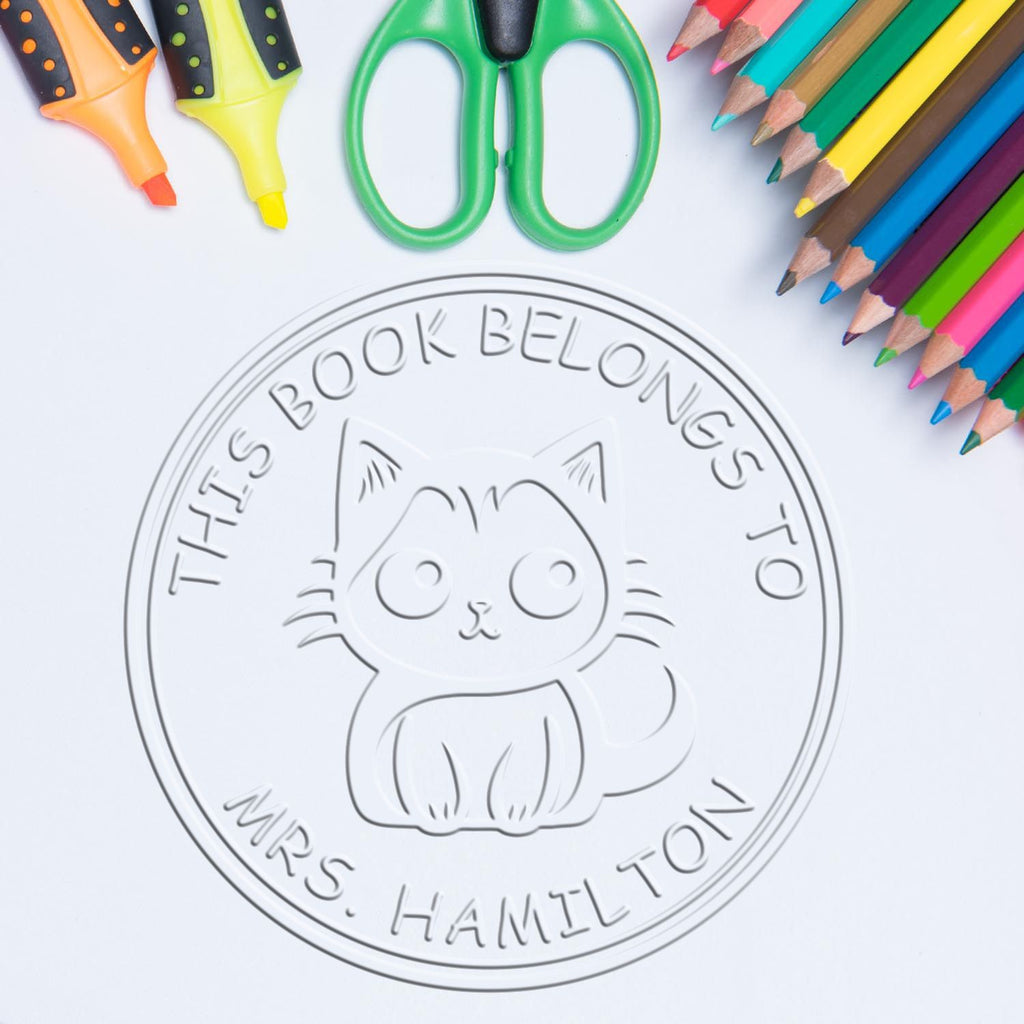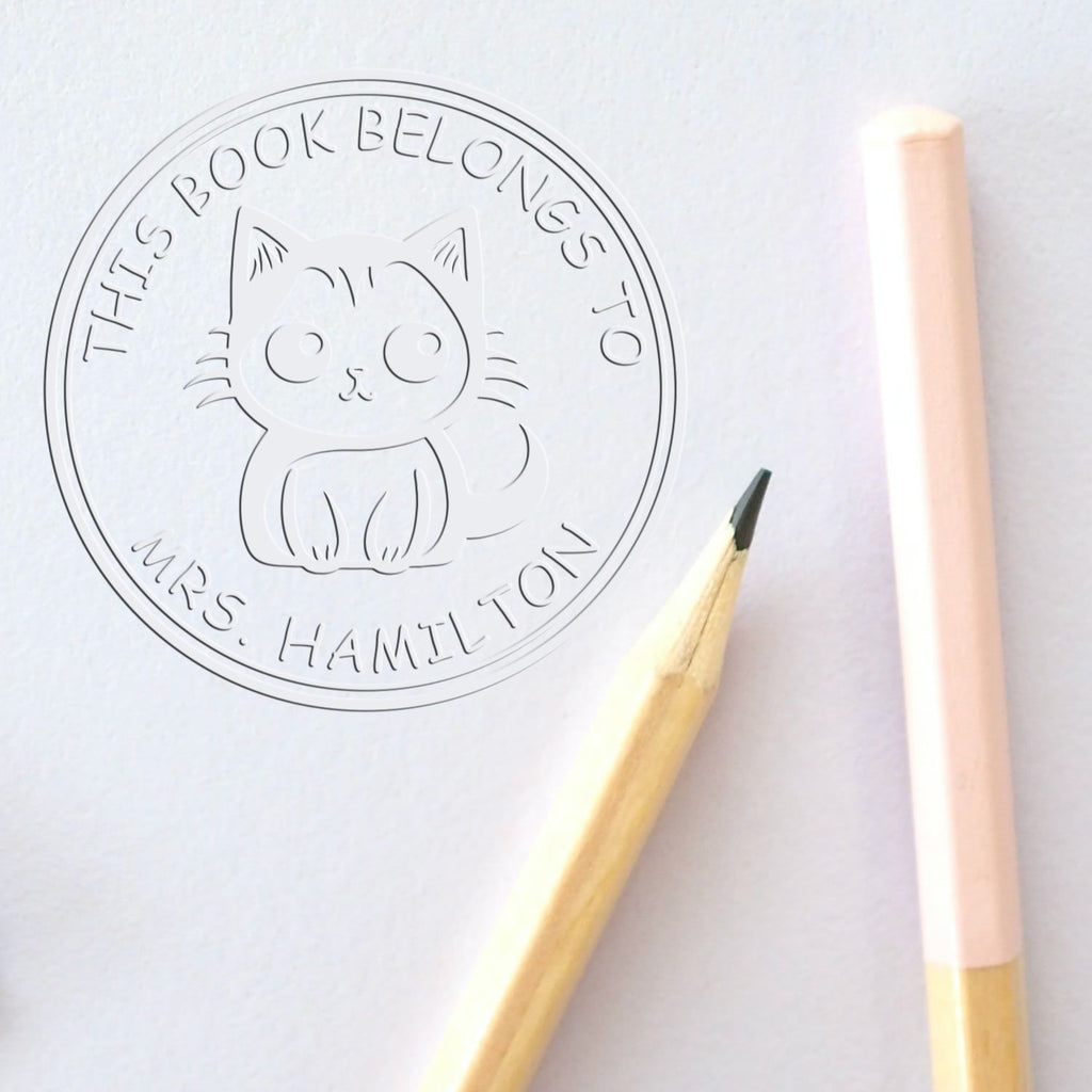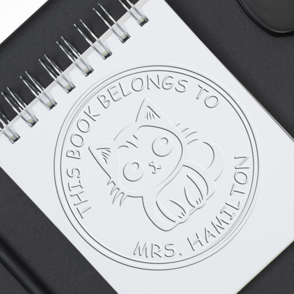- PERSONALIZED LIBRARY ELEGANCE: Transform your book collection with our 1-5/8" diameter hybrid embosser featuring an adorable cat design. Perfect for cat-loving bibliophiles who want to add a professional, personal touch to their treasured volumes.