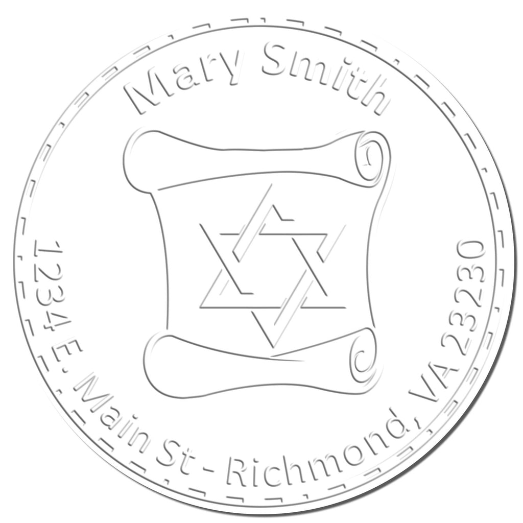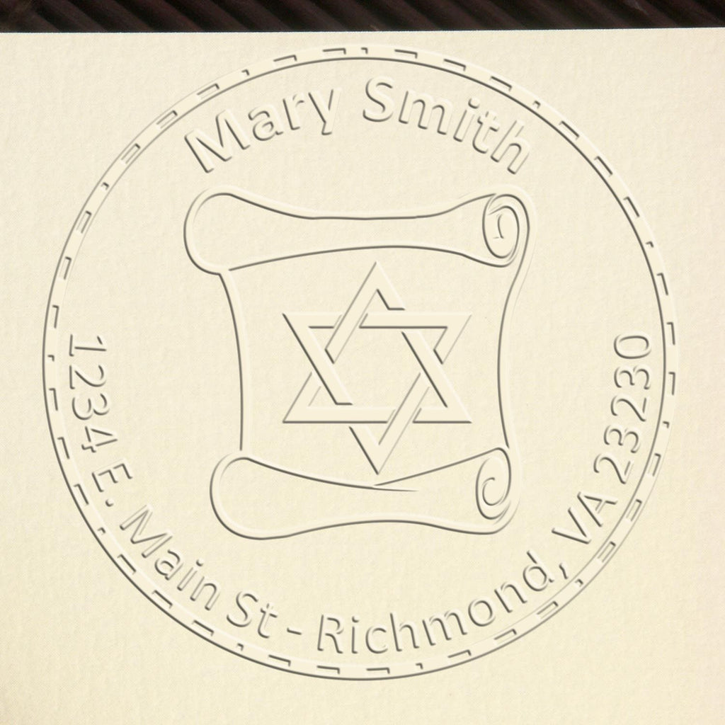 - PERSONALIZE YOUR SPACE with a stunning design featuring the Star of David and Torah scroll. This unique embosser allows you to customize your name and address, making it a meaningful addition to your Judaica collection. Stand out with a personalized touch that resonates with your heritage!