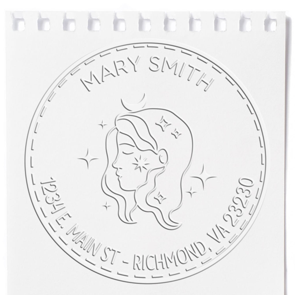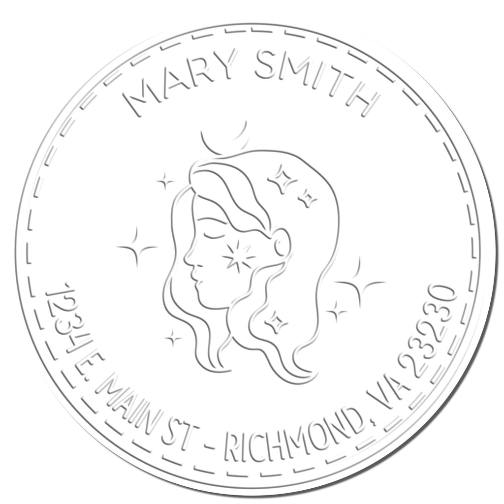 Discover the Ultimate Embossing Experience with Our Hybrid Diligent Virgo Custom Made Mail Embossed Stamp! Are you ready to elevate your stationery game? Introducing the Hybrid Diligent Virgo Custom Made Mail Embossed Stamp, a perfect blend of functionality and style that will transform your mailing experience. This unique embossing stamp features a stunning design that showcases a beautiful girl in profile, adorned with the Virgo zodiac symbol at its center. With its elegant double ring circular border, solid outer line, and dashed inner line, this stamp is not just a tool—it's a statement piece for your correspondence.