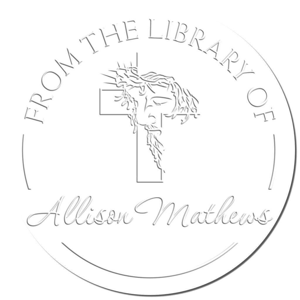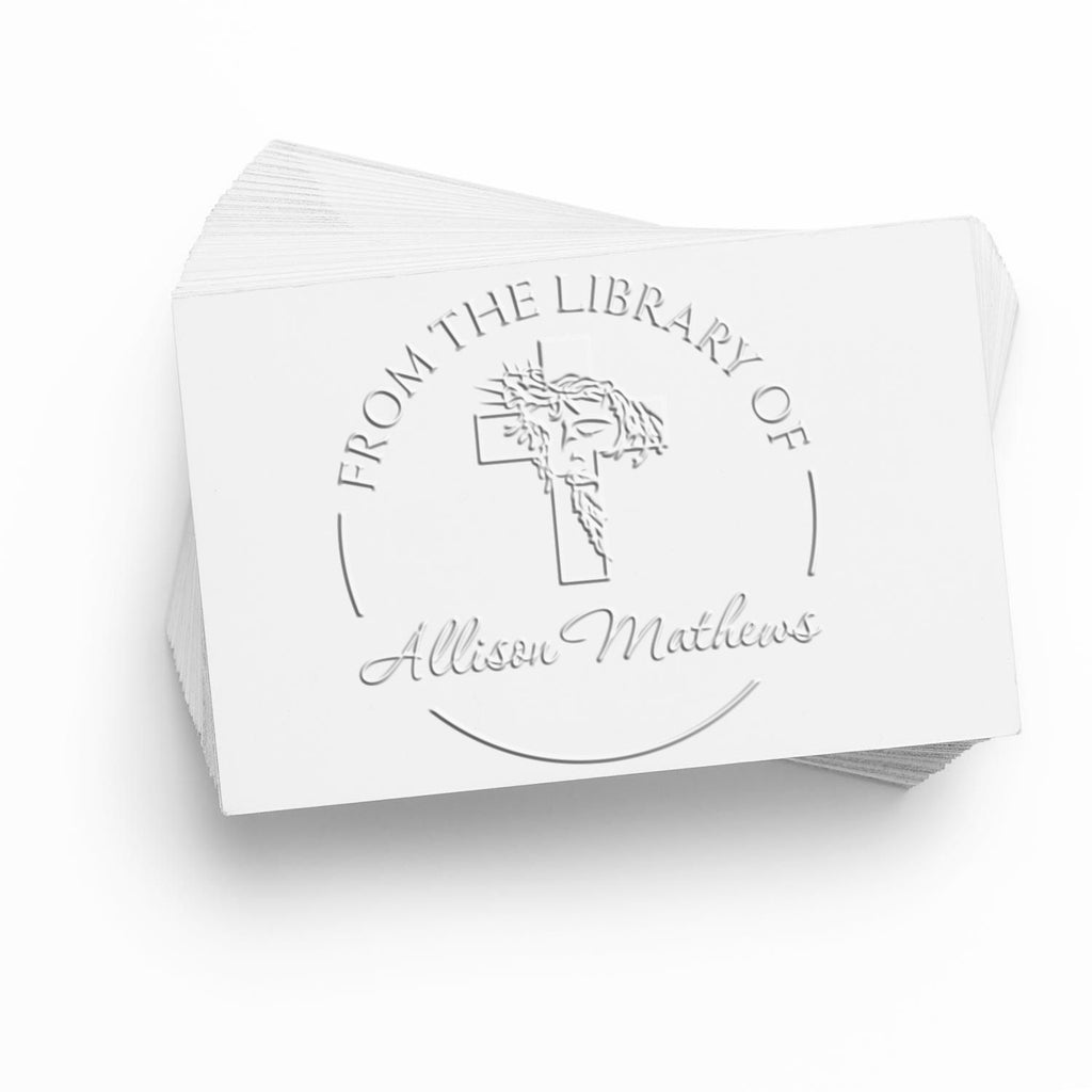 Crisp Impressions Every Time Experience the art of embossing like never before! Our Hybrid Seal Embossers are engineered to leave stunningly crisp impressions on every page. The intricate design features a beautiful Divine Cross at the center, surrounded by customizable text that can include phrases like "This Book Belongs To" or "From The Library of". With an impression size of 1-5/8" in diameter, your embossed creations will stand out with clarity and style.