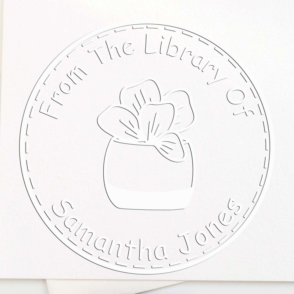 Are you a botanical enthusiast looking to add a touch of elegance and personalization to your cherished book collection? Look no further! Our Hybrid Flourishing Foliage Custom Book Property Embossing Seal is the perfect tool for you. This innovative book embosser is designed to create stunning, professional-quality impressions that will make your books stand out. With a diameter of 1-5/8", this embosser features a beautiful center image of a succulent in a short vase, surrounded by a double ring circular border that adds a sophisticated touch to your personal library.