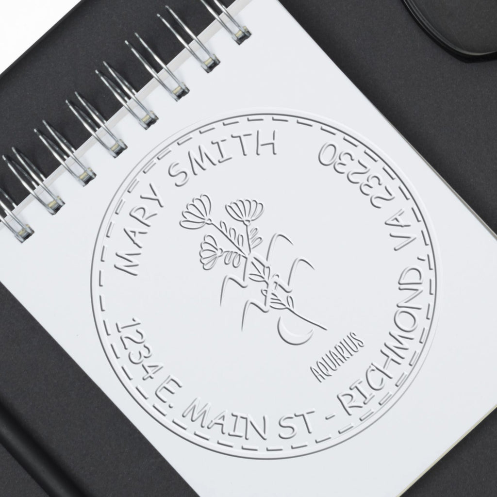 Transform Your Embossing Experience with Our Hybrid Flowering Aquarius Personalized Home Address Embosser! Elevate your professional image and add a touch of elegance to your correspondence with our exquisite Hybrid Flowering Aquarius Personalized Home Address Embosser. This remarkable tool is not just a functional item; it is a statement piece that embodies classic elegance and sophistication. Featuring the enchanting Aquarius Zodiac symbol surrounded by delicate flowers, this embosser is designed to impress and make your mail stand out. With an impressive impression size of 1-5/8" in diameter, it’s perfect for adding a personal touch to envelopes, invitations, and more!