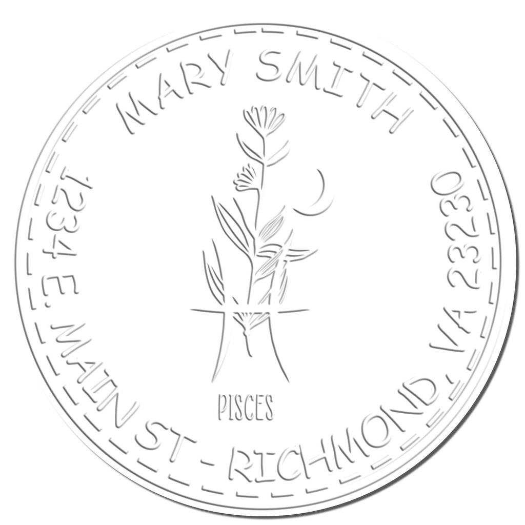 Elevate Your Mail with Our Stunning Pisces Zodiac Return Address Stamp! Make a celestial statement with our exquisite Hybrid Flowering Pisces Personalized New Home Embossing Seal, beautifully designed for the Pisces enthusiast! This unique address embosser is not just functional—it's a work of art that adds a touch of personality to your correspondence. Featuring a captivating center image of the Pisces Zodiac Symbol adorned with delicate flowers, this embosser is perfect for those who want to express their astrological identity in a sophisticated way.
