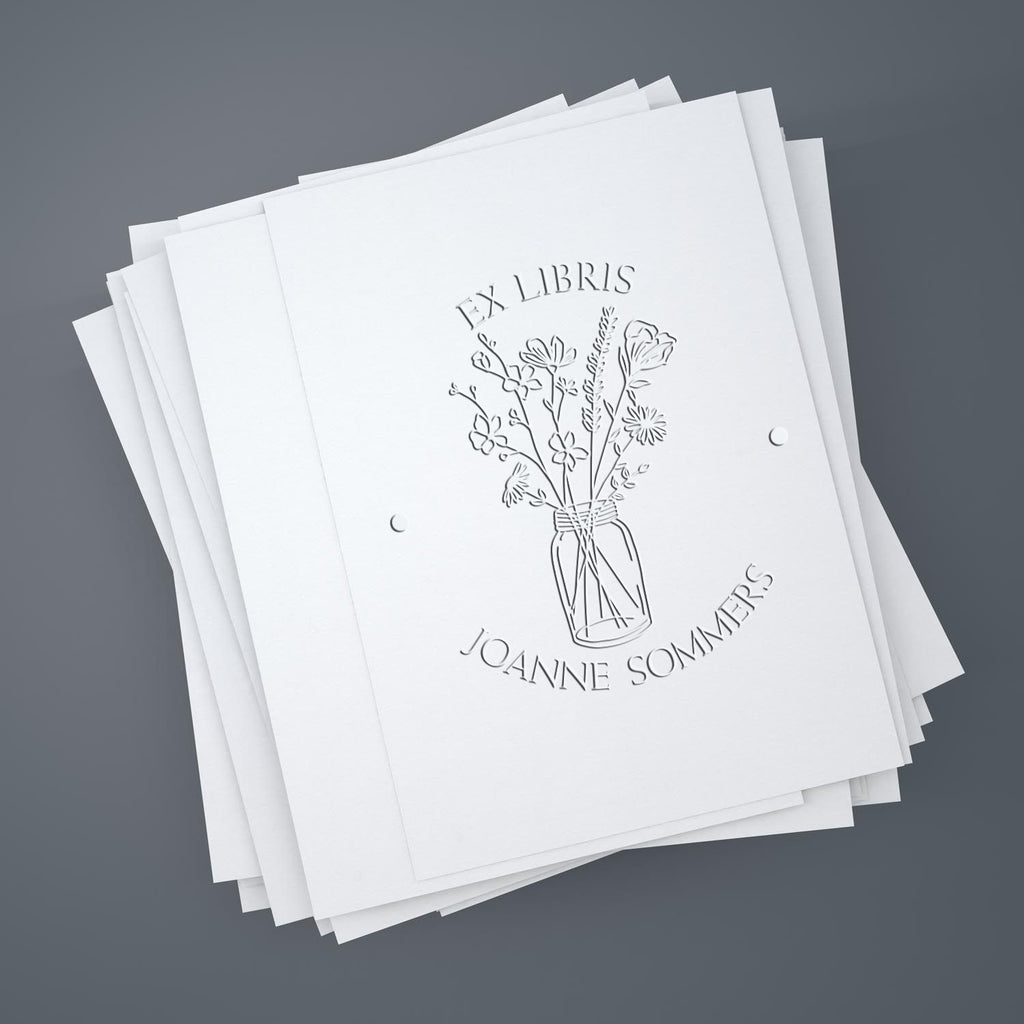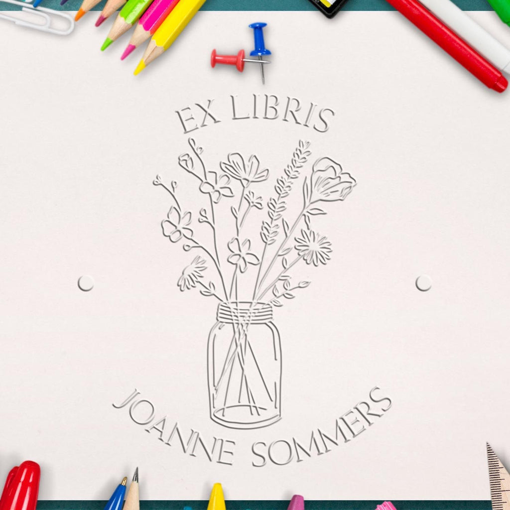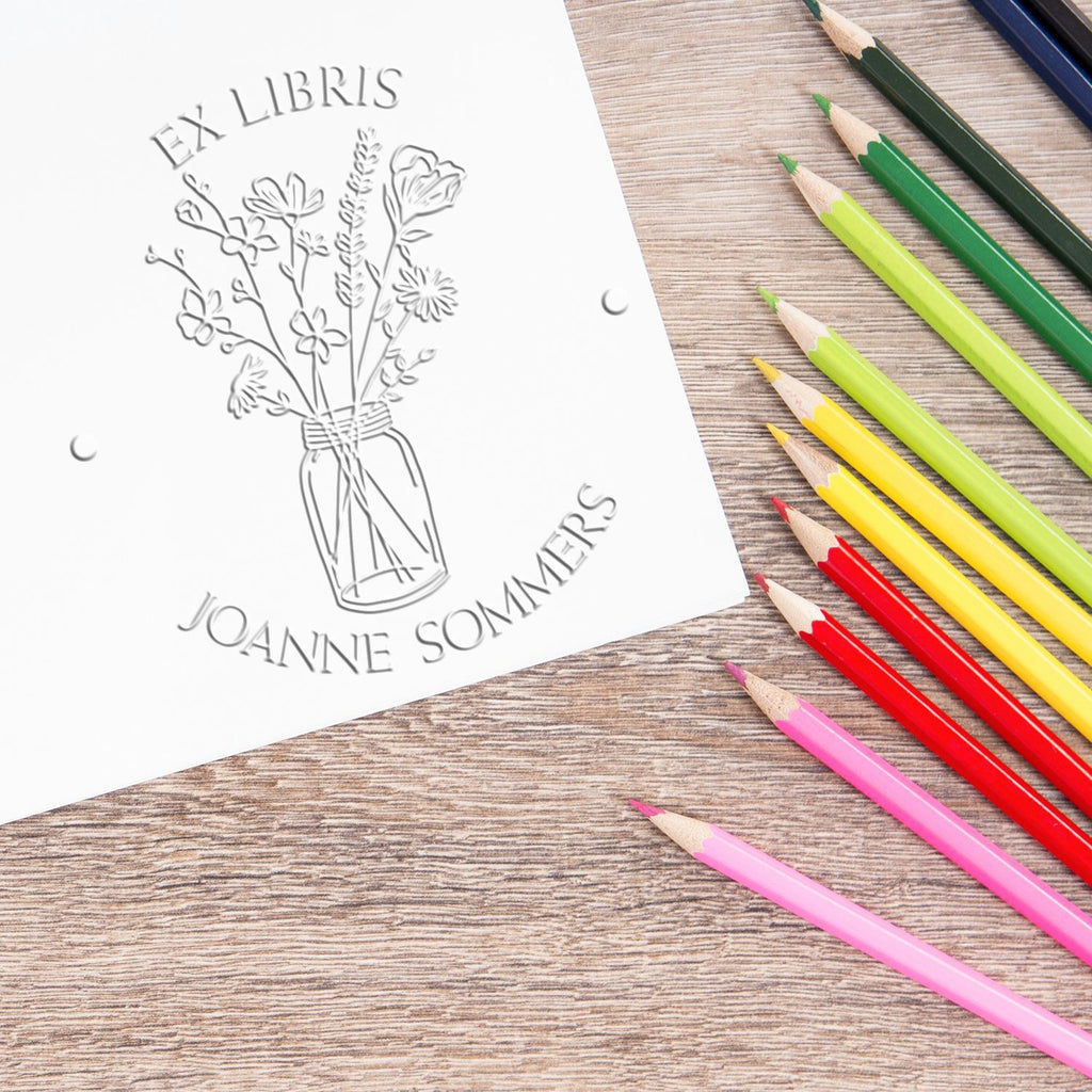 Personalize Your Collection Every book deserves special treatment, and our embosser allows you to give each one the attention it deserves. By personalizing your library with our Personalized My Library Embosser, you elevate your reading experience and commit to preserving the significance of your collection. The design features a charming center image of flowers in a glass jar, surrounded by phrases like "This Book Belongs To" and "From The Library of". You can customize it with your name or a special saying, making each book uniquely yours.
