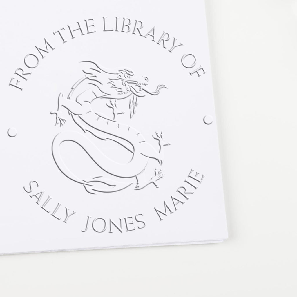 Hybrid Formidable Dragon Personalized Book Property Embossing Stamp Highlights and Features