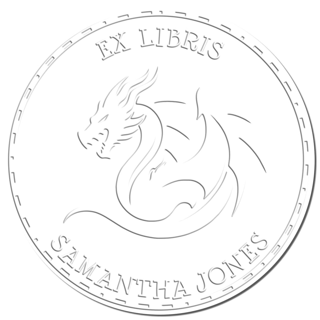 Impressive Design and Dimensions The Frost Fang Dragon design features a captivating center image that will enchant any book lover. The solid circle border is filled with charming white dashes and dots, and phrases such as "This Book Belongs To," "From The Library of," and "Ex Libris" can be elegantly displayed at the top arc, followed by your name or another saying at the bottom arc. With an impression size of 1-5/8" in diameter, this stamp is perfect for making a bold statement on the pages of your favorite books.
