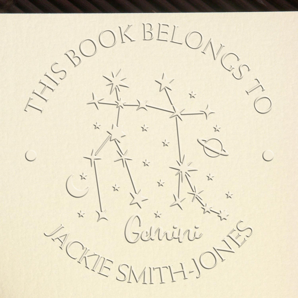 - PERSONALIZE YOUR COLLECTION effortlessly! With our Gemini Constellation design, you can customize your embosser with your name or a unique saying. Make your books truly yours and stand out among fellow astrology enthusiasts!