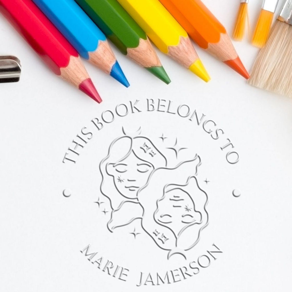 Introducing the Hybrid Gemini Twins with Stars Custom Book Lover Seal Press Elevate your book collection with our exquisite Hybrid Gemini Twins with Stars Custom Book Lover Seal Press! This unique embosser is not just a tool; it’s a statement of your love for literature and astrology. Perfect for book lovers and astrology enthusiasts alike, this custom-made embossing seal will add a touch of elegance and personalization to your cherished books.