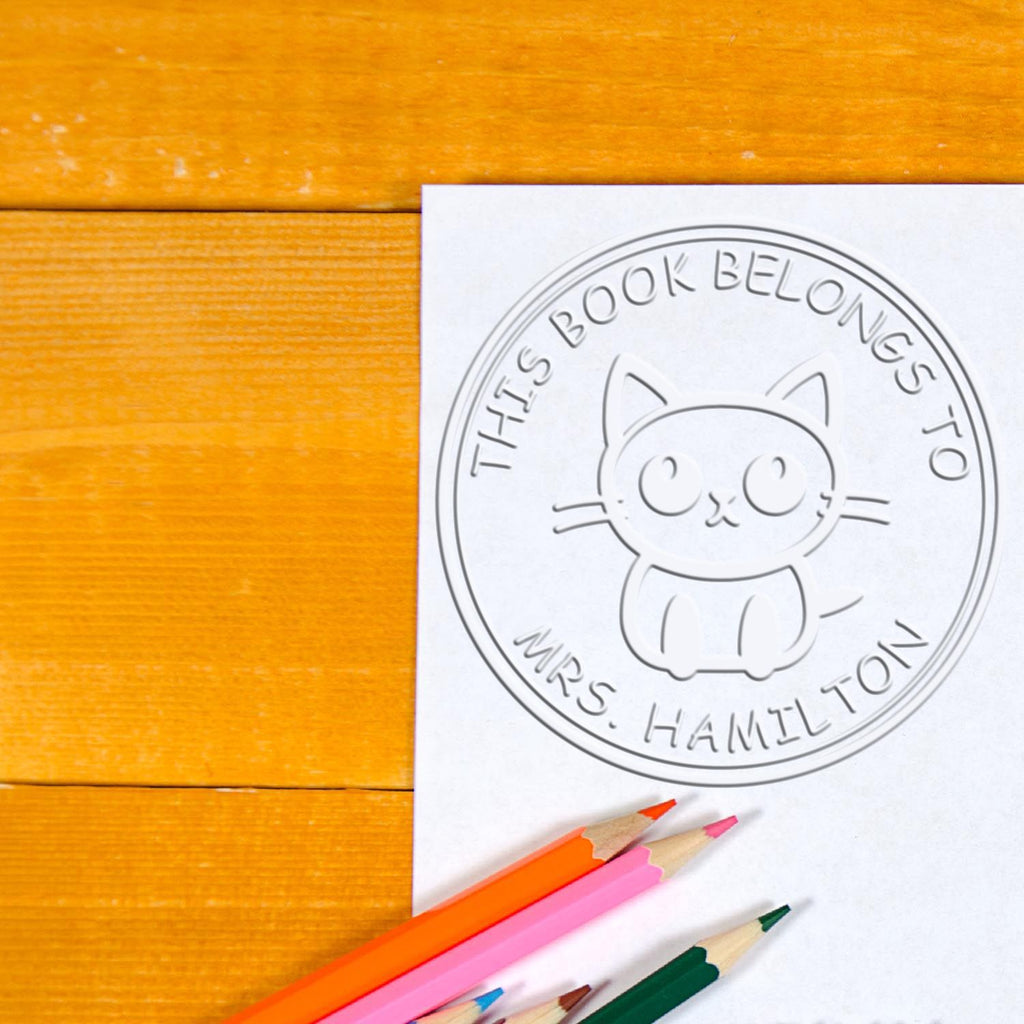 - PERSONALIZED ELEGANCE: Transform your book collection with this 1-5/8" diameter custom embossing seal featuring a graceful cat design. Perfect for cat-loving bibliophiles, this stamp adds a sophisticated, personal touch to every book in your library.