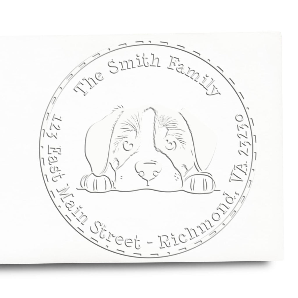 Introducing the Hybrid Greater Swiss Mountain Dog Customized Name and Address Embosser – the perfect blend of style, precision, and personalization! This unique embosser is designed for dog lovers who want to add a touch of elegance to their correspondence while celebrating their beloved pets. With a charming illustration of a Greater Swiss Mountain Dog puppy, this embosser not only marks your documents but also showcases your love for your furry friend.