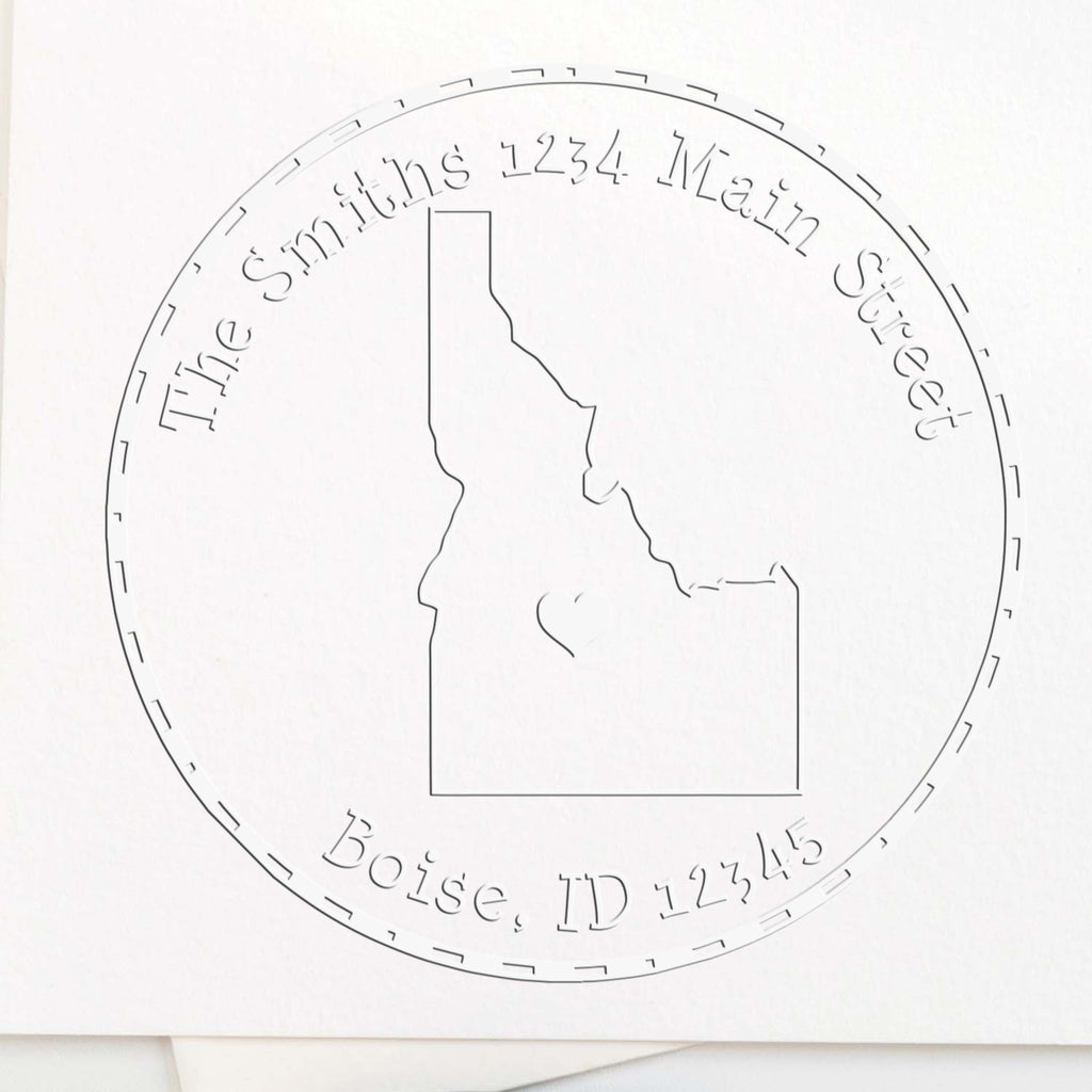 Featuring a stunning Idaho state outline with a heart marking the capital, this 1-5/8" round embosser creates crisp, sophisticated impressions that instantly enhance your professional image. The modern typography and decorative border add a touch of contemporary sophistication to every piece of mail you send.