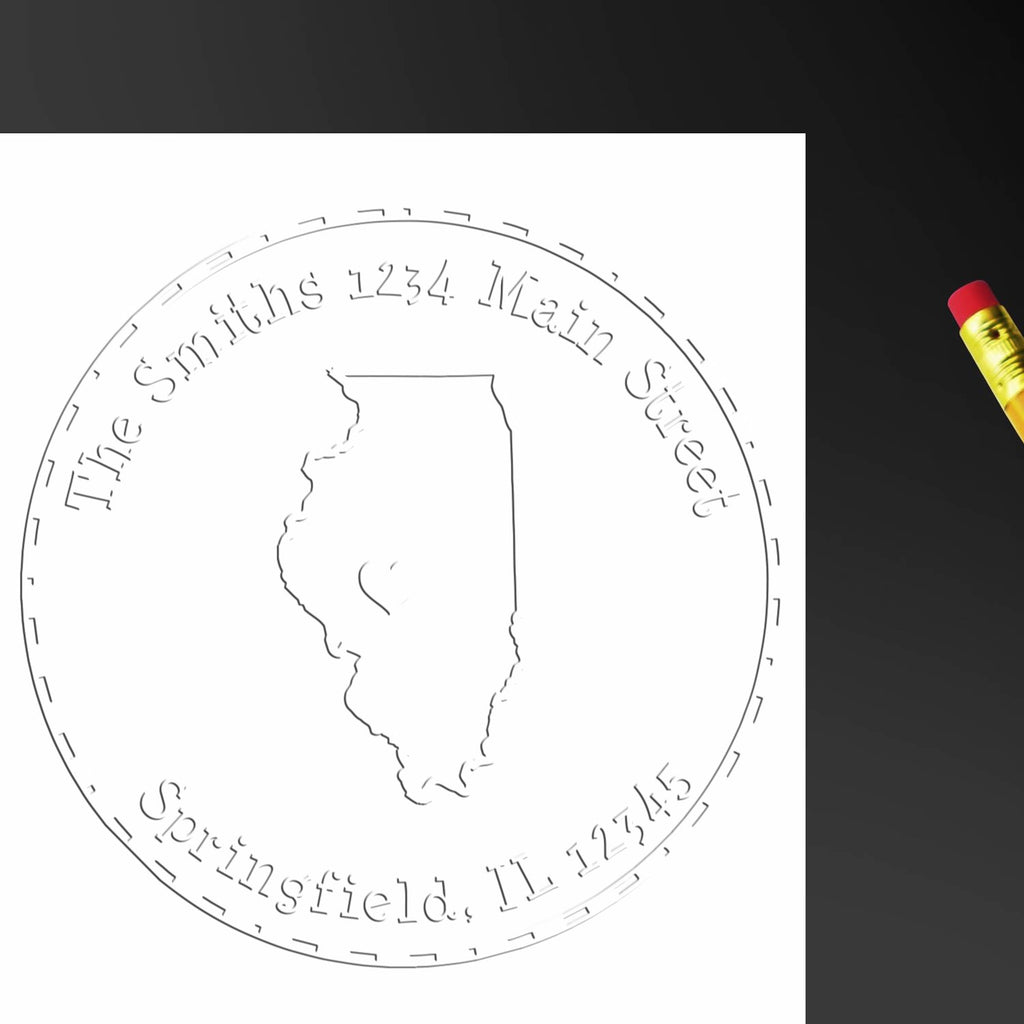Elevate your business correspondence with our Premium Illinois Personalized Return Address Seal Embosser - where professional elegance meets state pride. This sophisticated 1-5/8" round embosser features a stunning Illinois state outline with a decorative heart above the capital, all beautifully framed in an elegant border design.