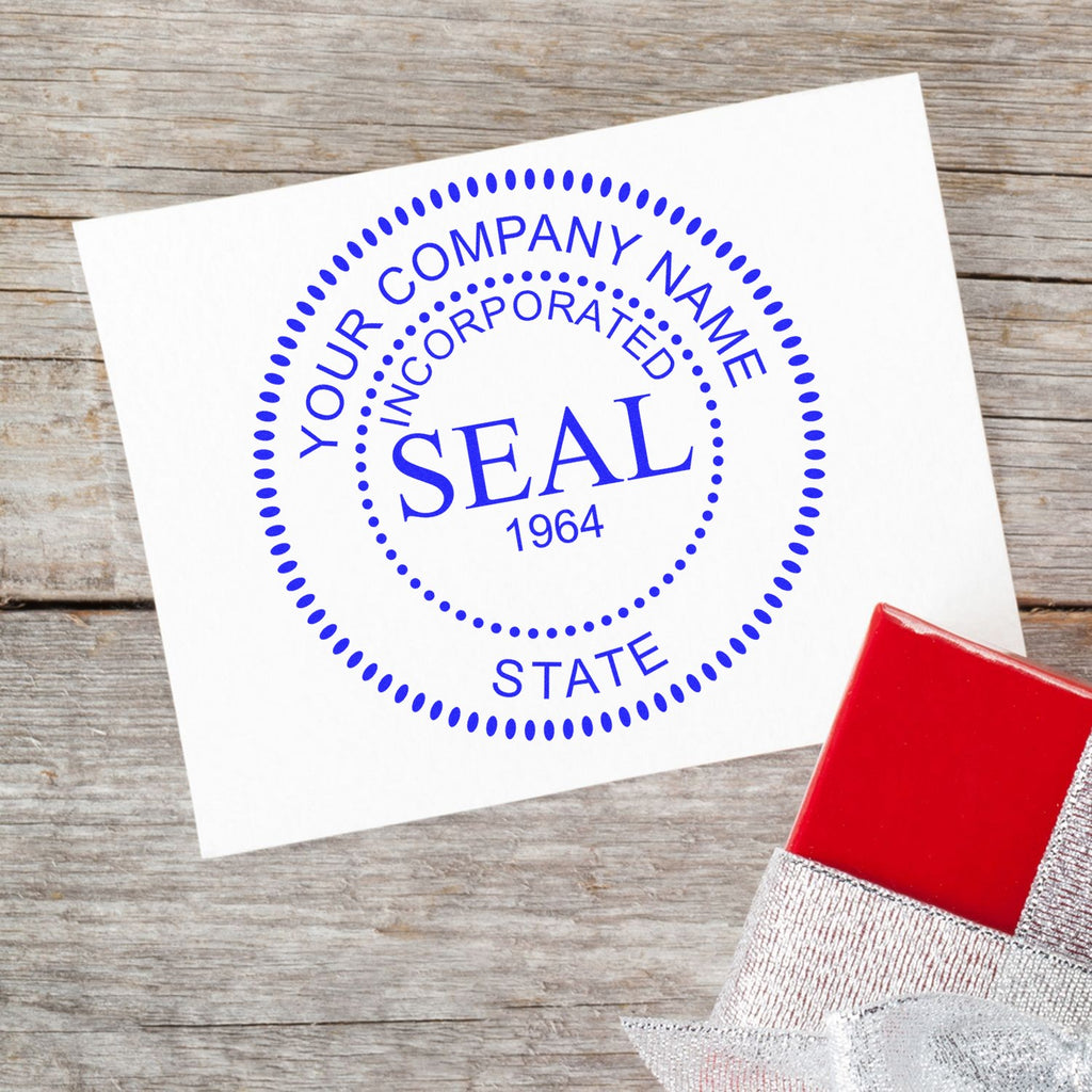 The Perfect Corporate Seal A corporate seal is not just a stamp; it’s a symbol of your company’s identity and tradition. Our custom seal, featuring a circular layout with a dotted border, includes your company name and state, with the word "Incorporated" prominently displayed. The date "1964" adds a touch of history, making it ideal for honoring your company’s legacy while enhancing your branding efforts.