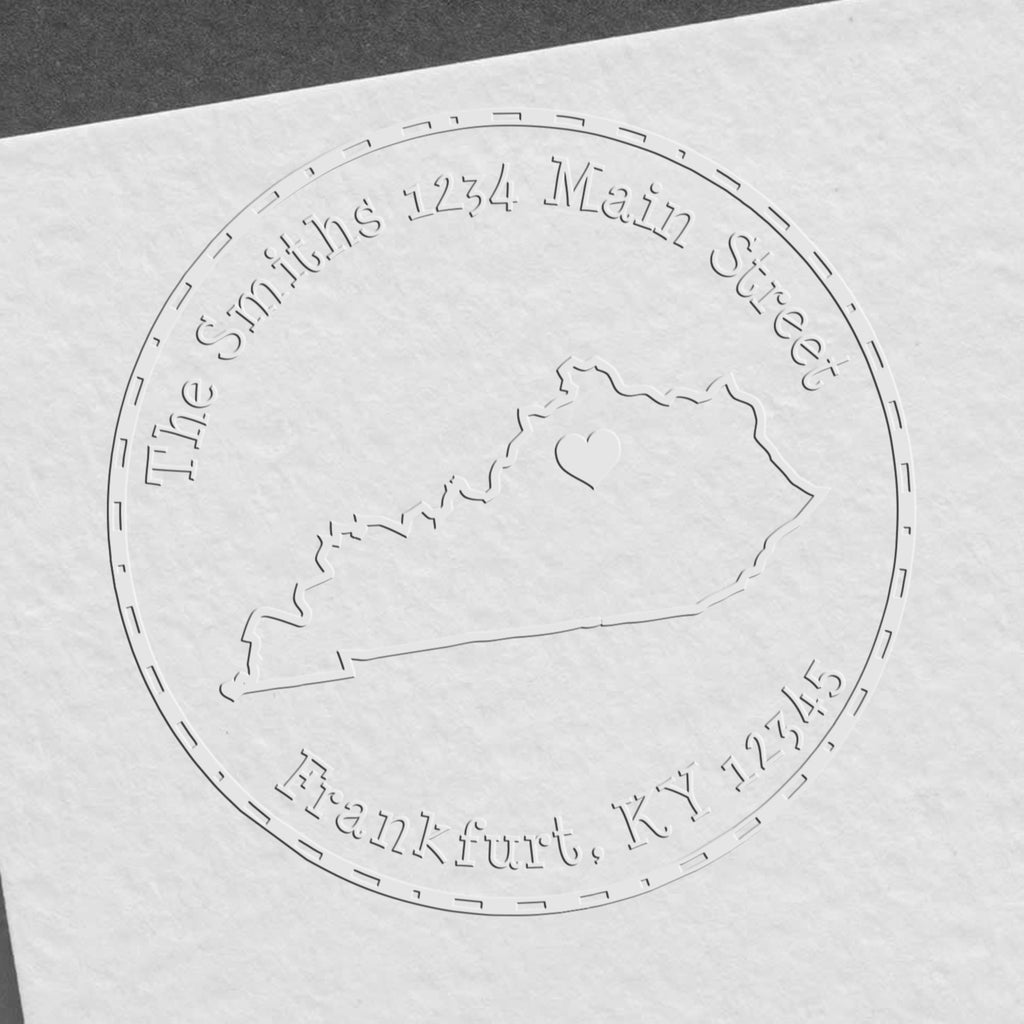 - PROFESSIONAL KENTUCKY PRIDE: Showcase your state spirit with our custom embosser featuring an elegant Kentucky map design with a heart over the capital, perfect for adding sophistication to your business correspondence.