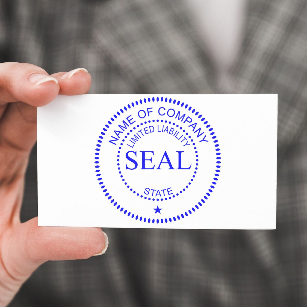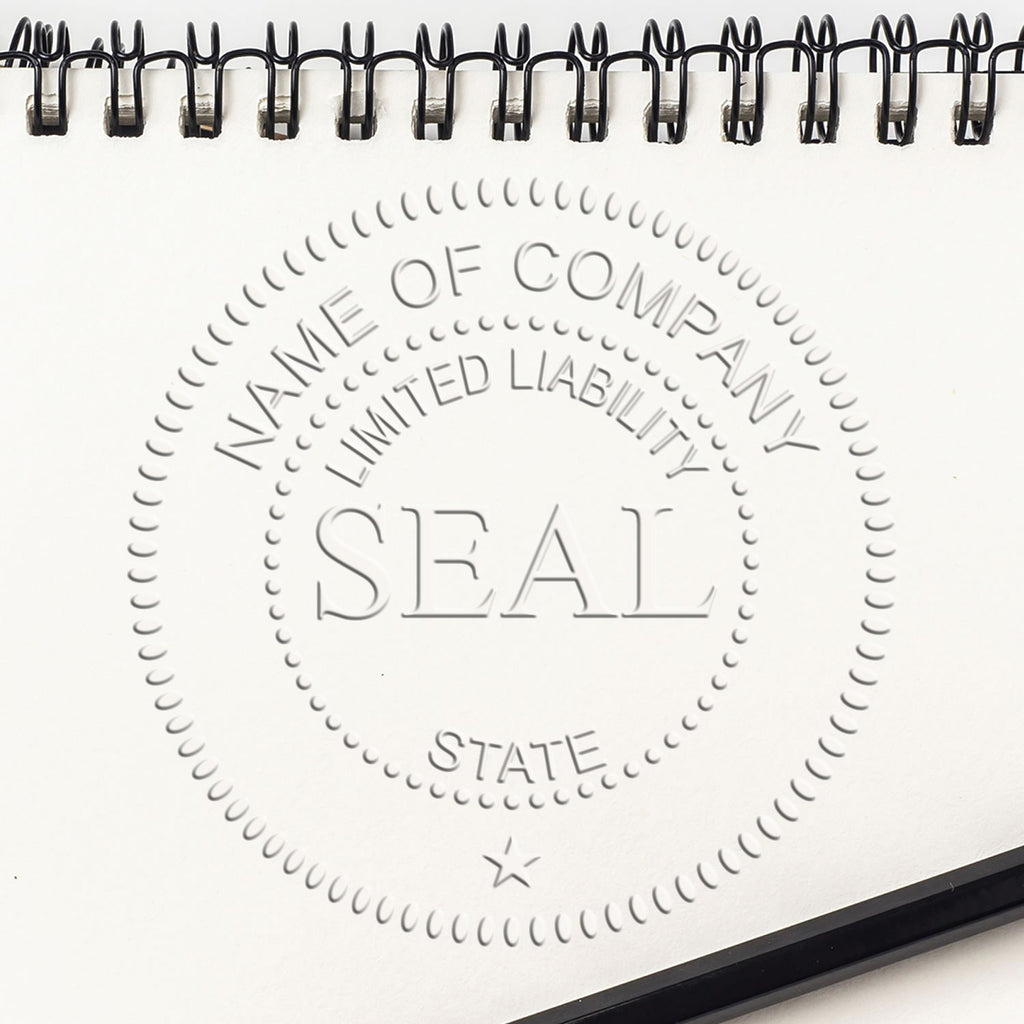 Our seal features a stylish monochromatic design with a circular seal and a dotted border. The outer ring proudly displays your company name and state, while the inner circle highlights "Limited Liability" above the prominent word "Seal," complemented by a small star at the bottom. This elegant design not only looks professional but also enhances your corporate image.