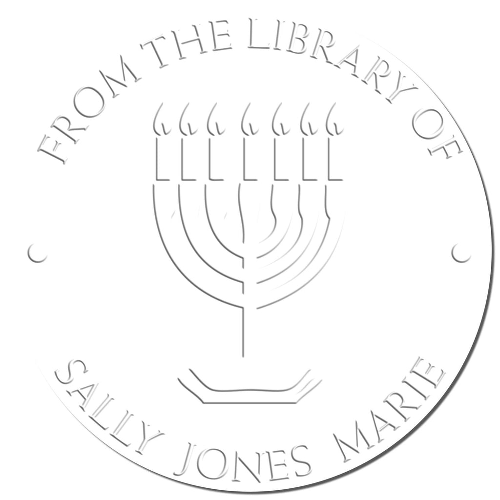 Personalization at Its Best! Make your collection truly yours! With our Lovely Menorah book embosser, you can personalize your books with your name, initials, or even a custom design. The top arc can feature phrases such as "This Book Belongs To" or "From The Library of," followed by your name or another saying at the bottom arc, separated by two dots in the center. It’s a wonderful way to add a unique touch to your beloved books and make them stand out on your shelves.